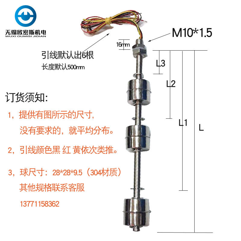 📚 非标定制 连杆浮球 水位液位开关 传感器 控制器 304不锈钢 3点