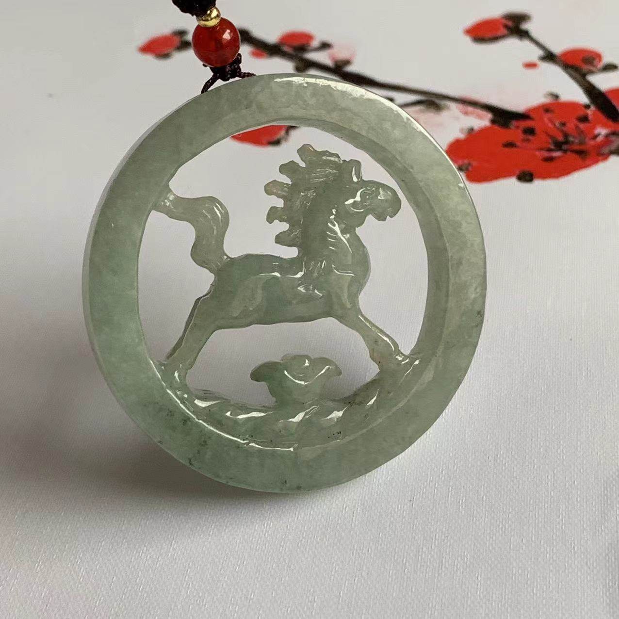 📚 缅甸翡翠吊坠A货一马平川马牌挂件马到成功龙马精神马上有钱车挂