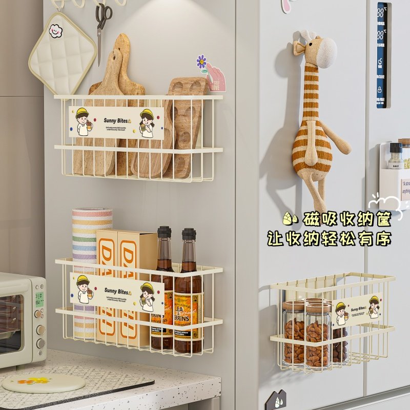 📚 厨房冰箱磁吸收纳盒侧面壁挂纸巾盒保鲜膜袋调料瓶厨房工具置物架