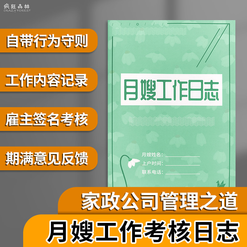 📚 月嫂工作日志月嫂上户记录本母婴护理育婴师工作手册月子修复管理手册母婴月子中心登记本会所护理记录档案本