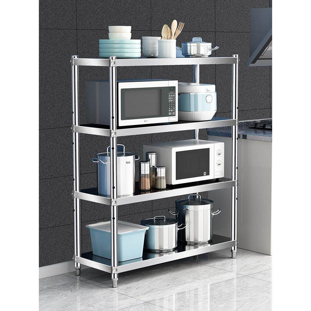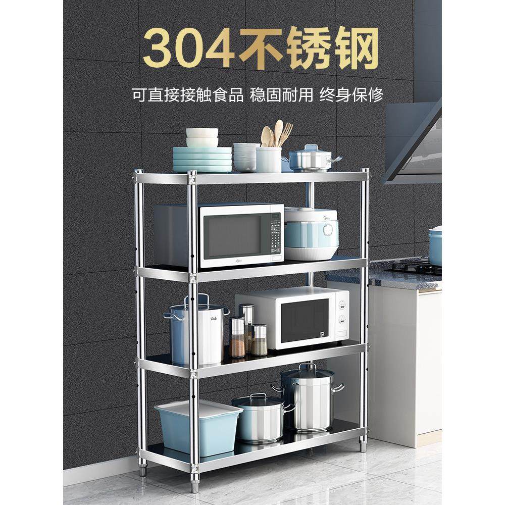 📚 厨房置物架304不锈钢加厚加粗落地式多层家用收纳家电微波炉架3o4