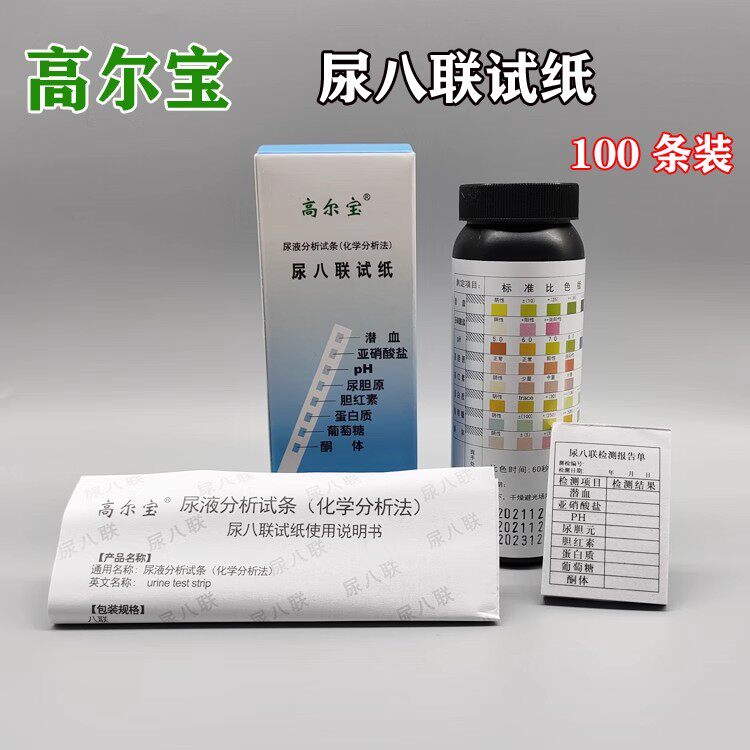 📚 高尔宝目测八联尿试纸尿液分析试纸条尿八项检测尿检尿常规检查