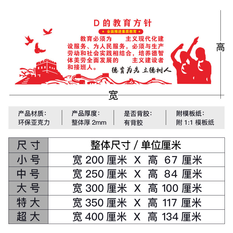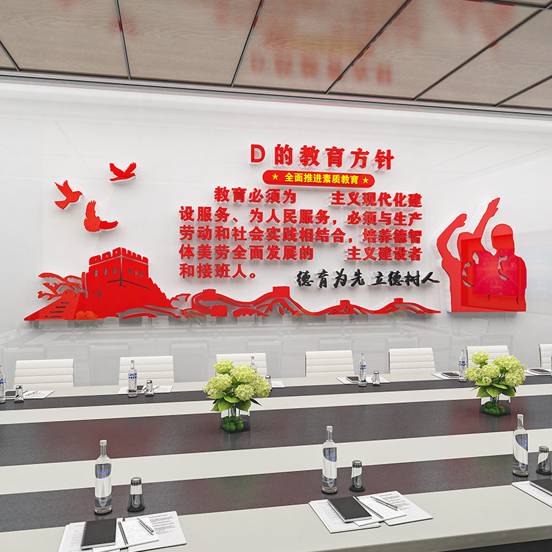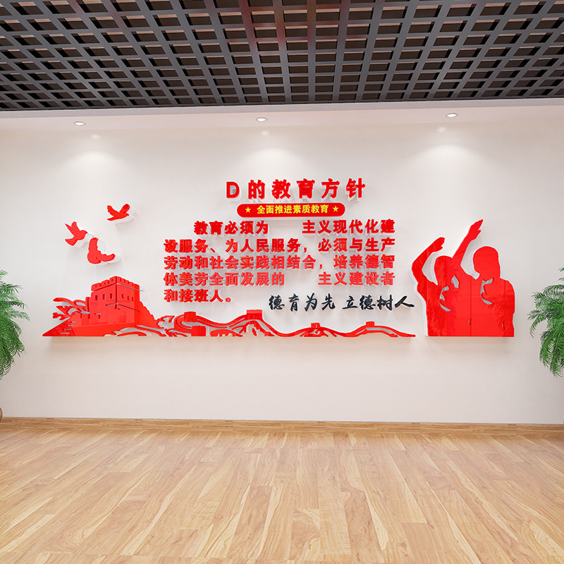 📚 党的教育方针墙贴学校走廊标语会议室文化墙亚克力自粘3d立体贴画
