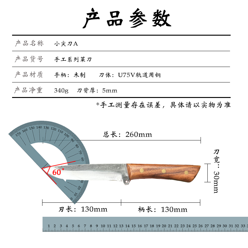 📚 三坚手工锻打户外直刀家用多用途剔骨削皮野餐露营烧烤割肉小猎刀