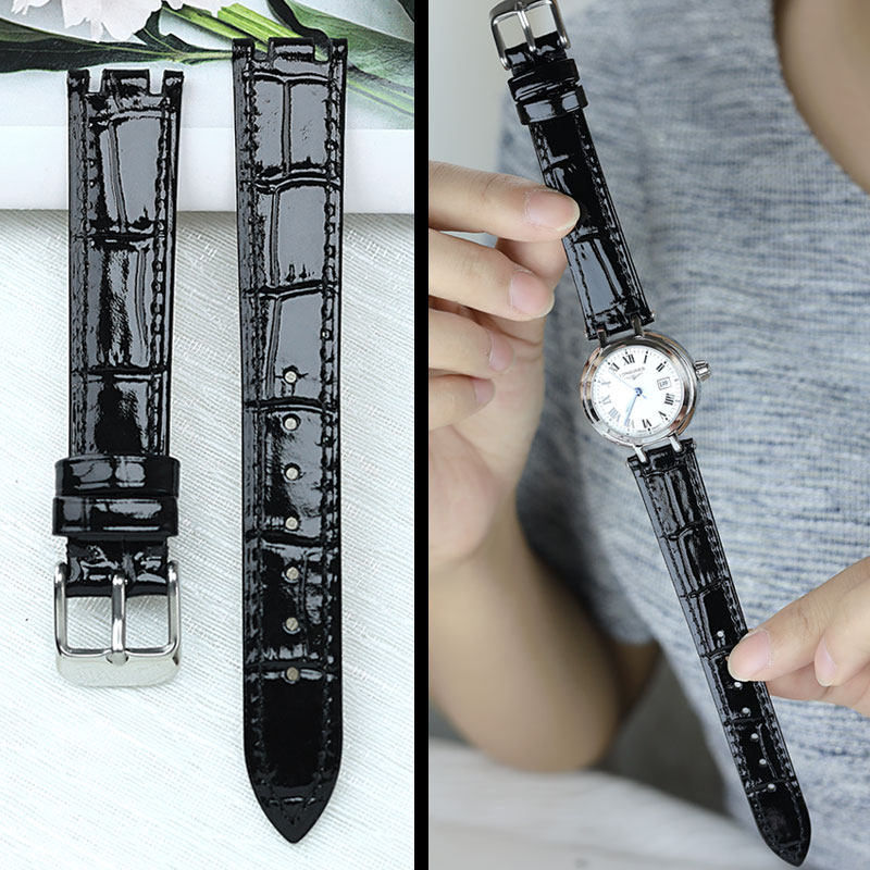 📚 真皮牛皮适用浪琴心月系列女款手表带L8.110/115/113双凹口皮带