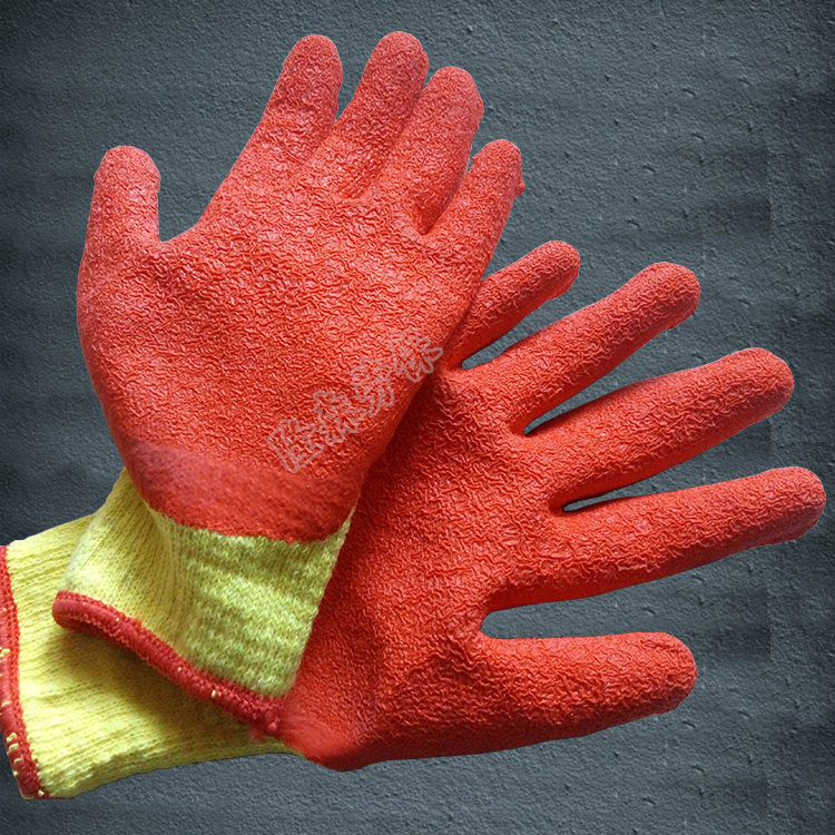 📚 皱纹浸胶劳保手套乳胶防滑耐磨耐油手套挂胶涂胶劳防手套耐磨包邮