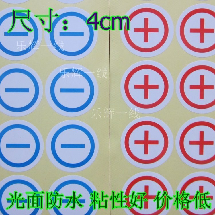 📚 正极标签 负极不干胶贴纸 大号正负标记圆形防水标签 + -极订制