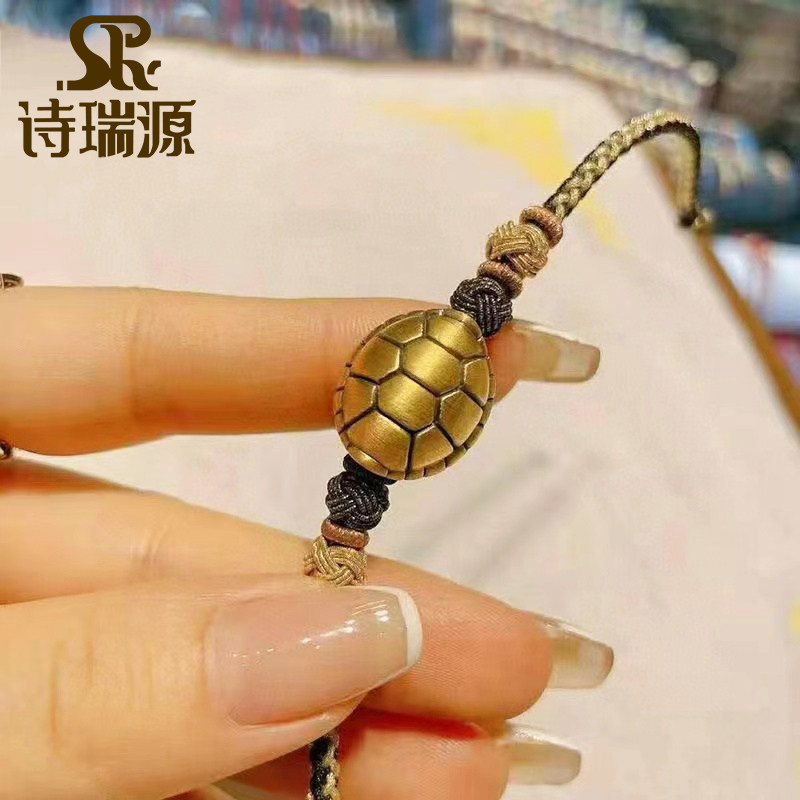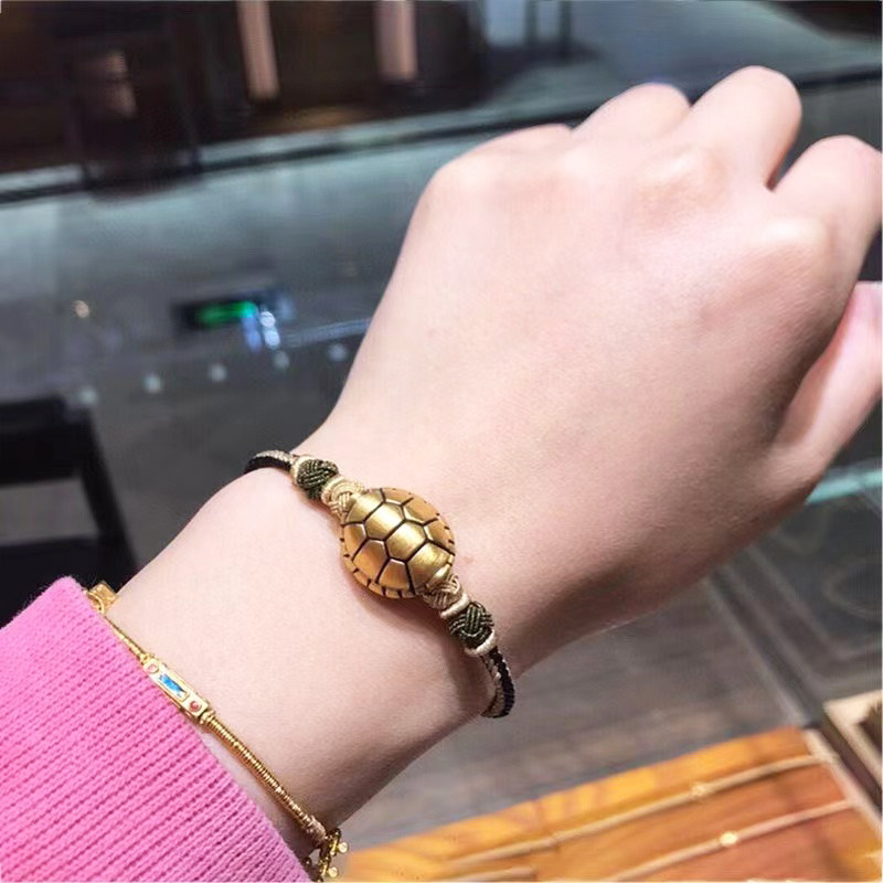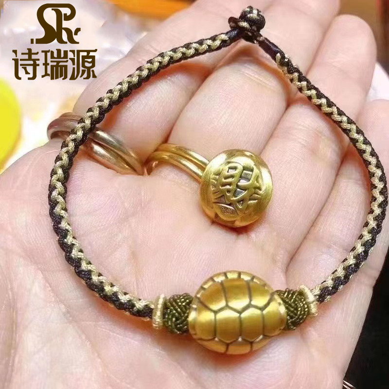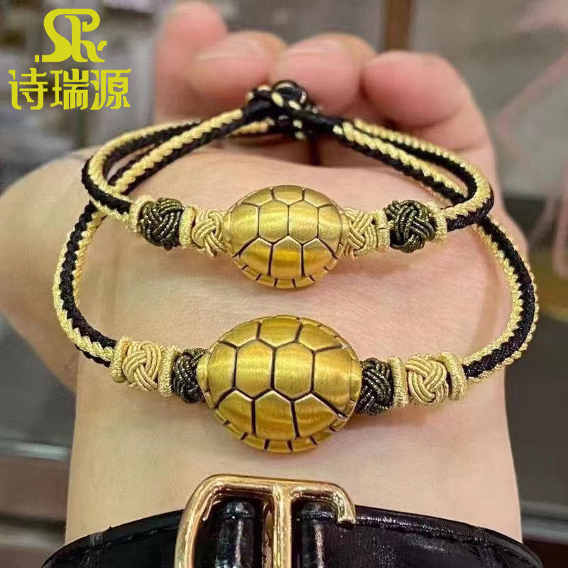 📚 3D硬金富甲天下黄金手链男女新款999足金情侣手串纯金龟壳转运珠