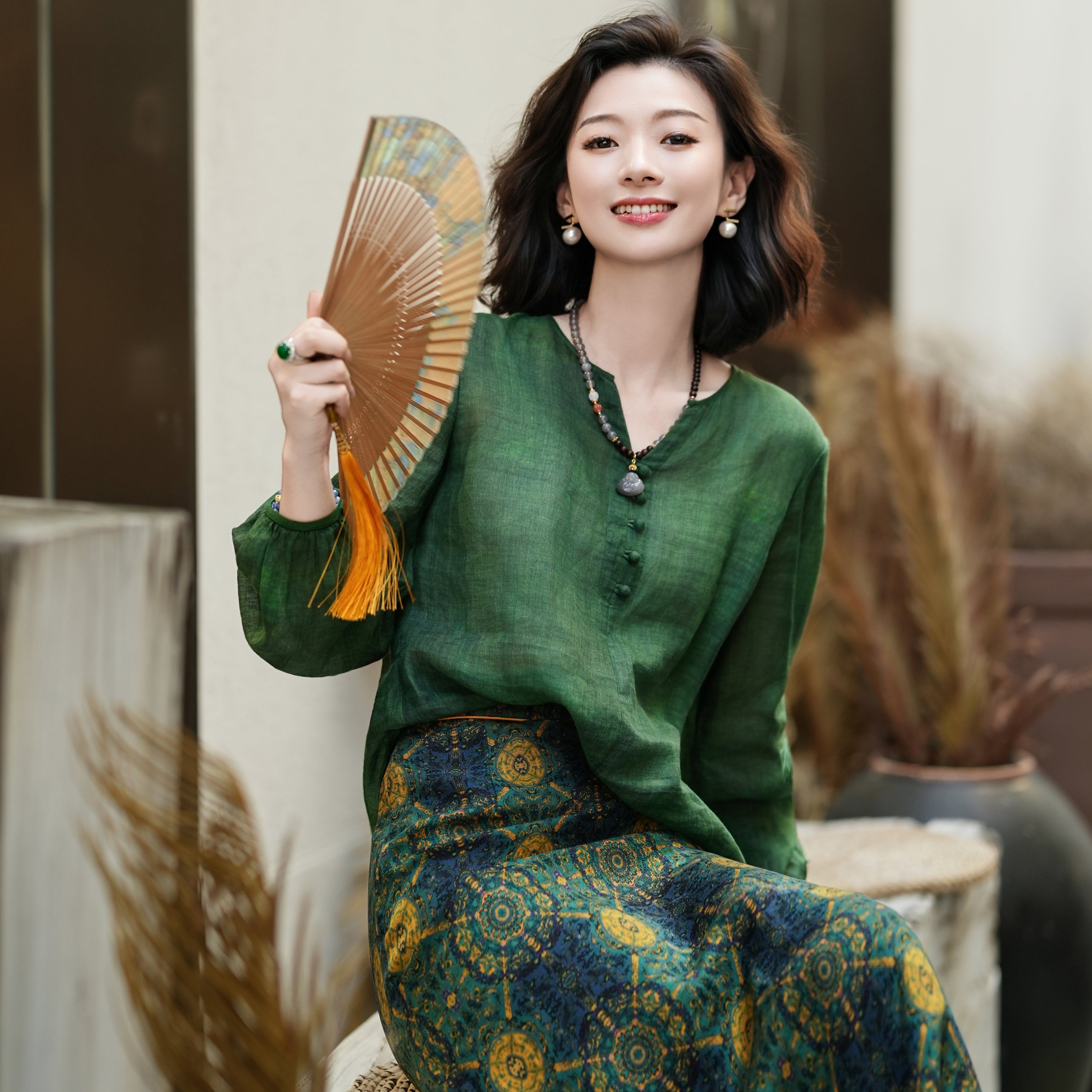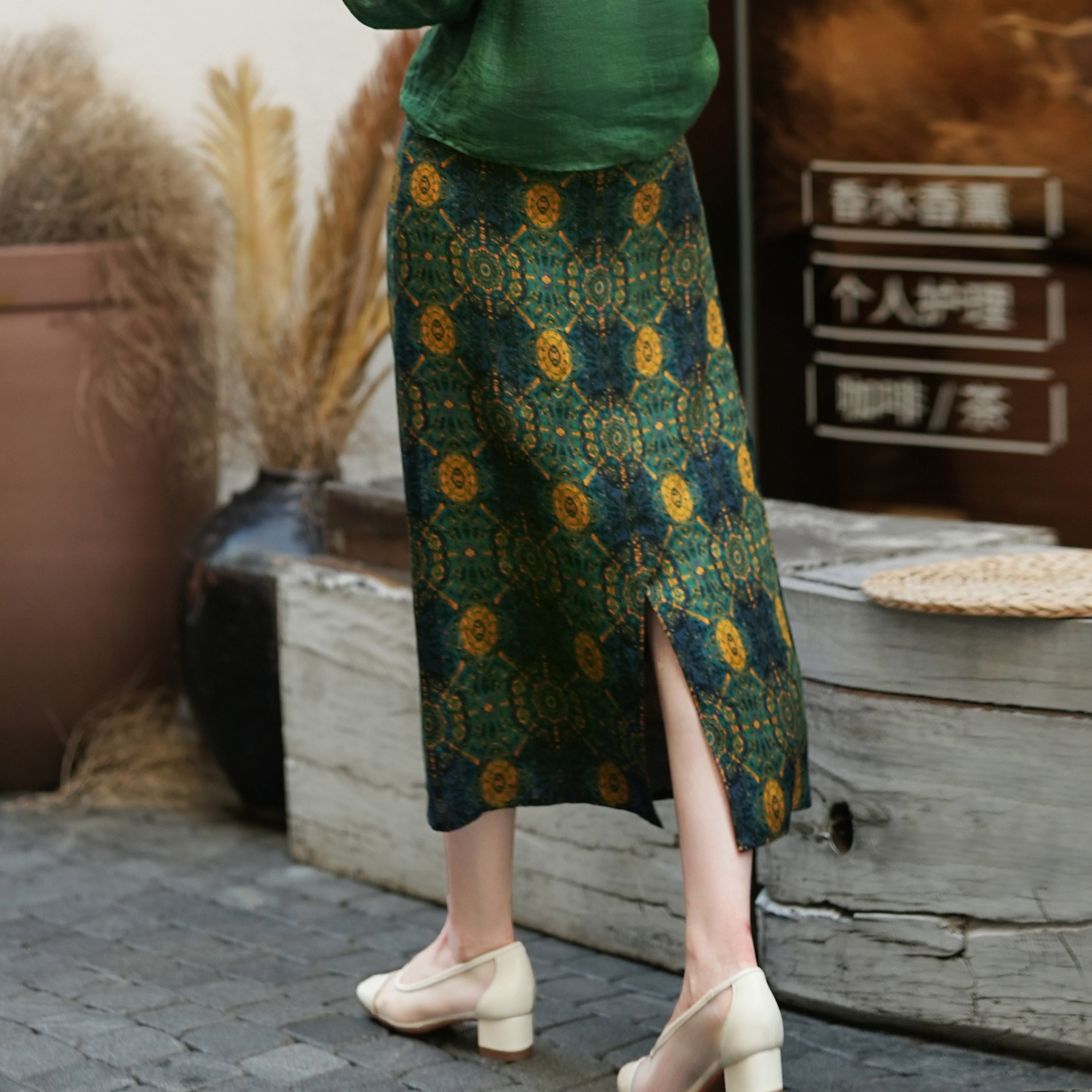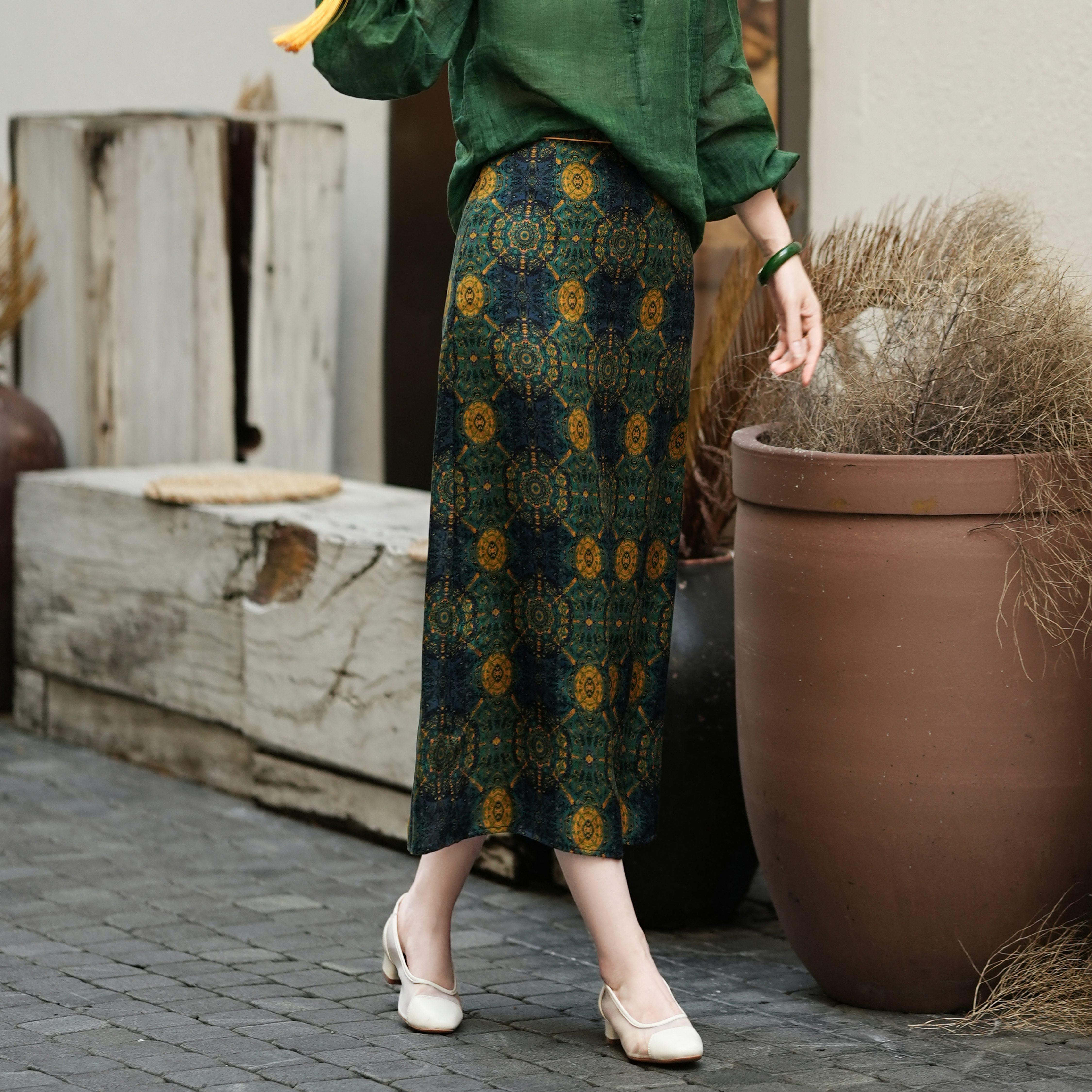 📚 西子/【醒春漫野】22姆米香云纱桑蚕丝八达晕蓝绿半身裙/BQTJ303