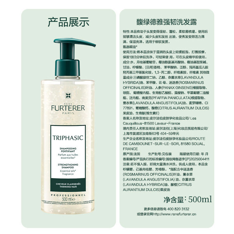 📚 Rene Furterer/馥绿德雅白珠洗发露三相精华强韧发根蓬松丰盈发量