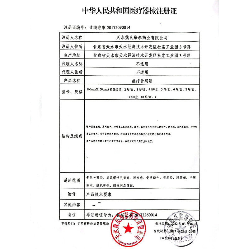 📚 魏氏磁疗骨痛贴外用敷贴适用颈椎、腰间盘、肩周等各种部位5贴/盒