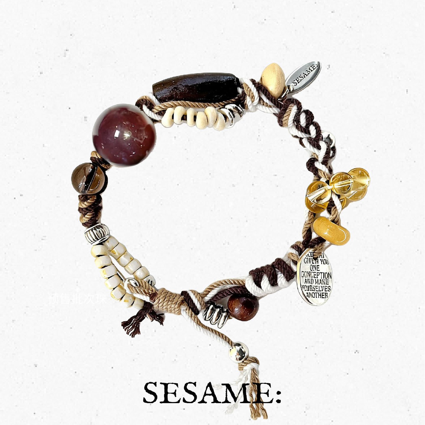 📚 飒米SESAME春日花花紫红色玛瑙美拉德手链编织藏式手绳送女生礼物