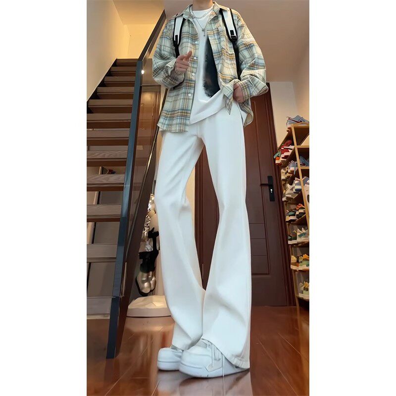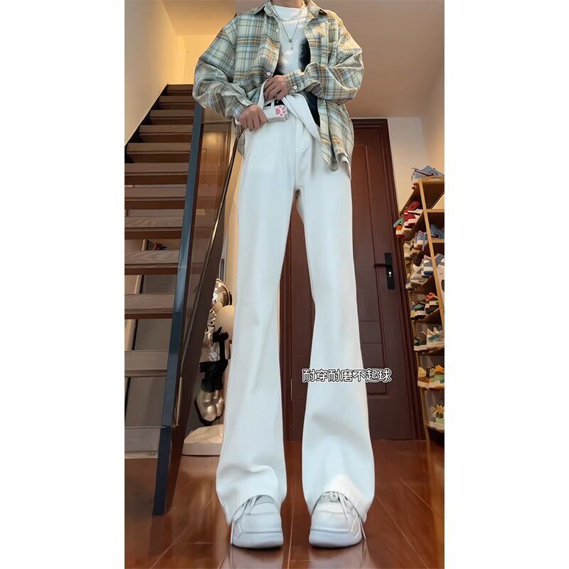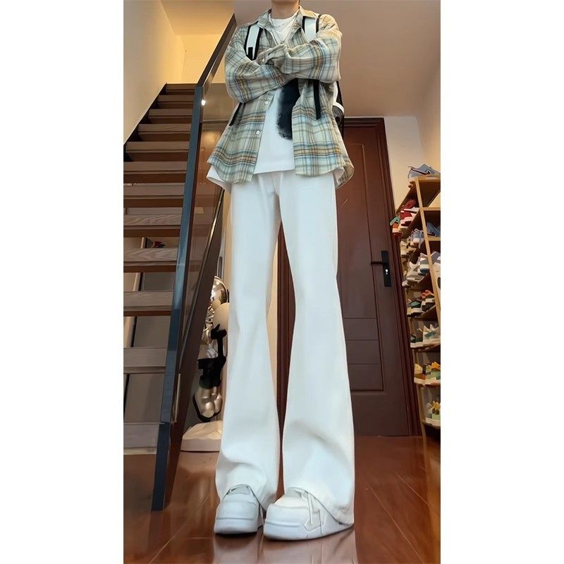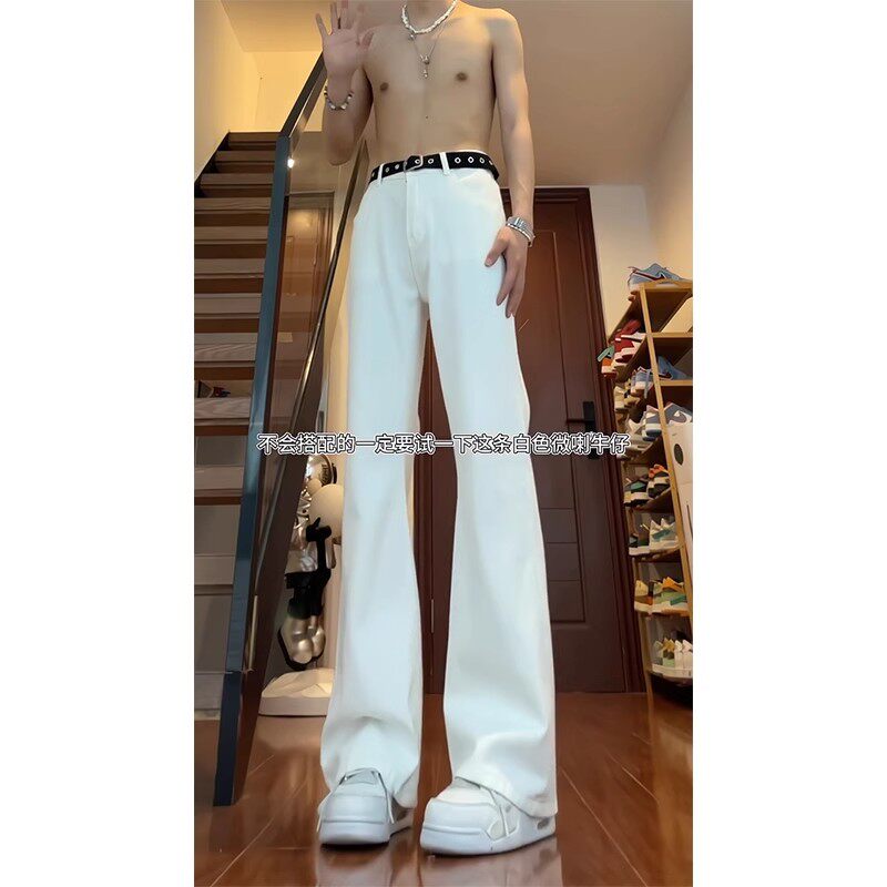 📚 纯白色弯刀牛仔裤男款秋冬加绒高个子加长版裤子直筒不贴腿微喇裤