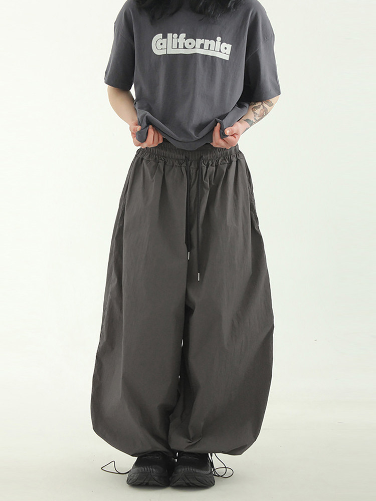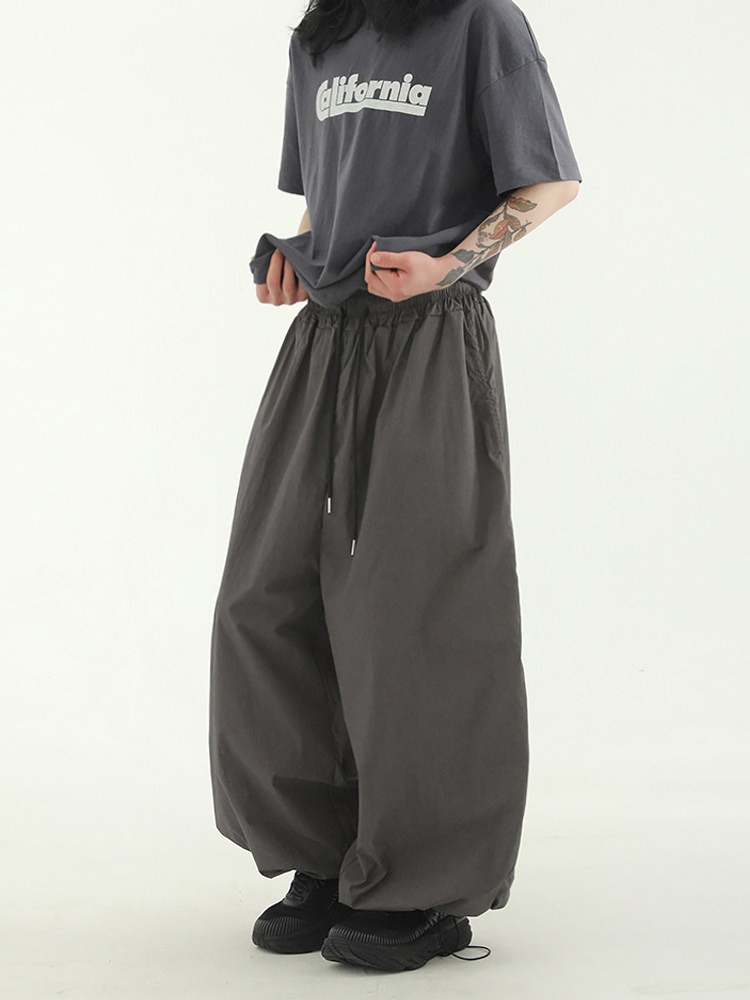📚 韩国代购23 paper wide balloon banding pants 尼龙宽松抽绳长裤