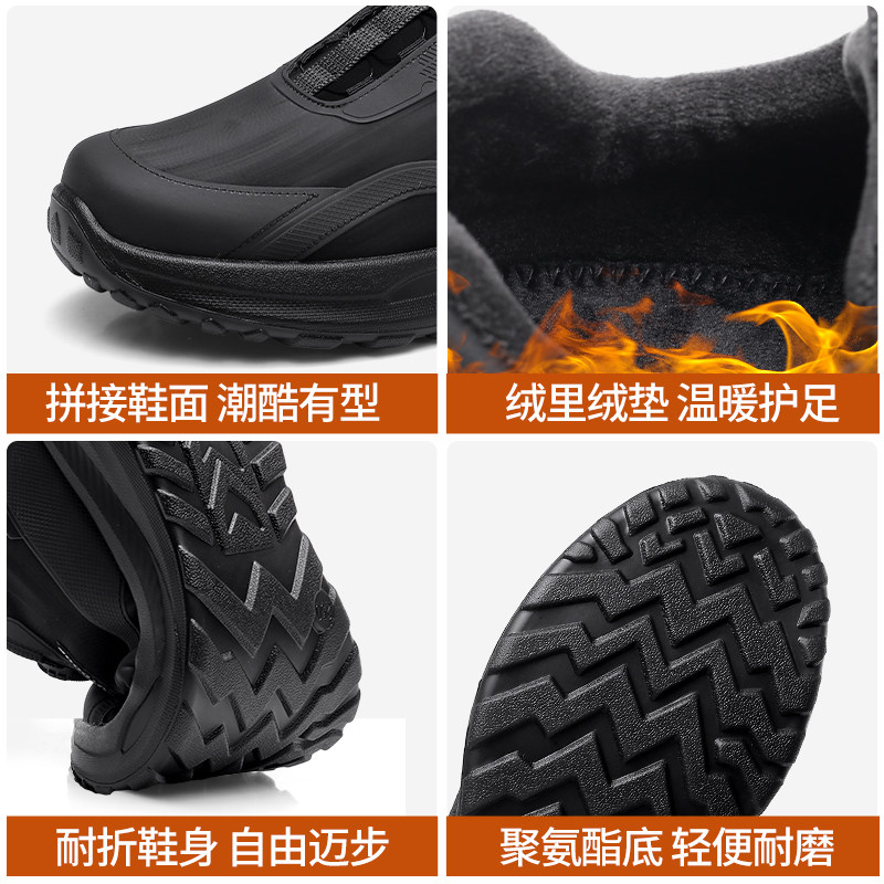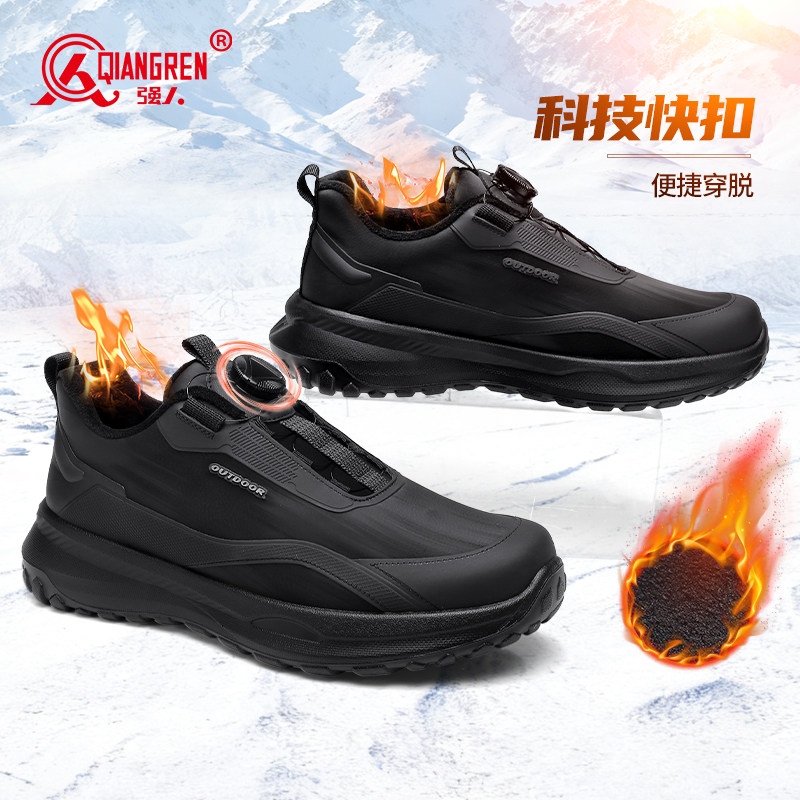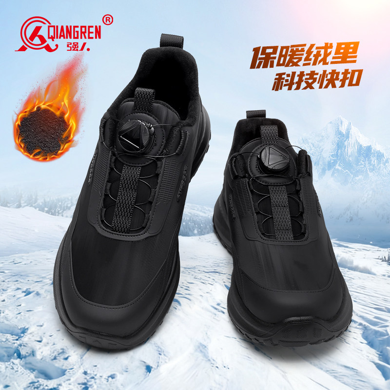 📚 强人3515男鞋冬季保暖加绒棉鞋运动休闲鞋黑色通勤训练旋转扣2025