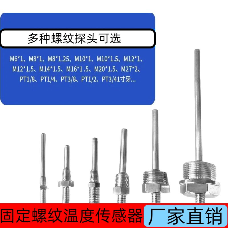 📚 热电偶温度探头不锈钢防水固定螺纹Pt100铂热电阻温度传感器K/E型