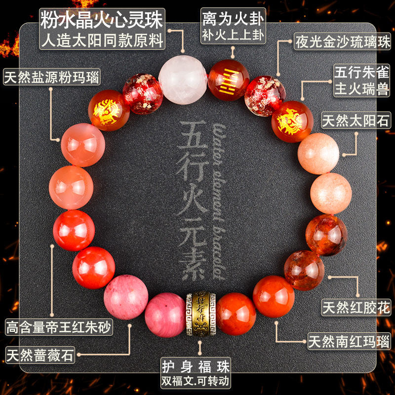 📚 五行缺火补火手链喜用火属性饰品火元素发光能量手串离卦男士女款