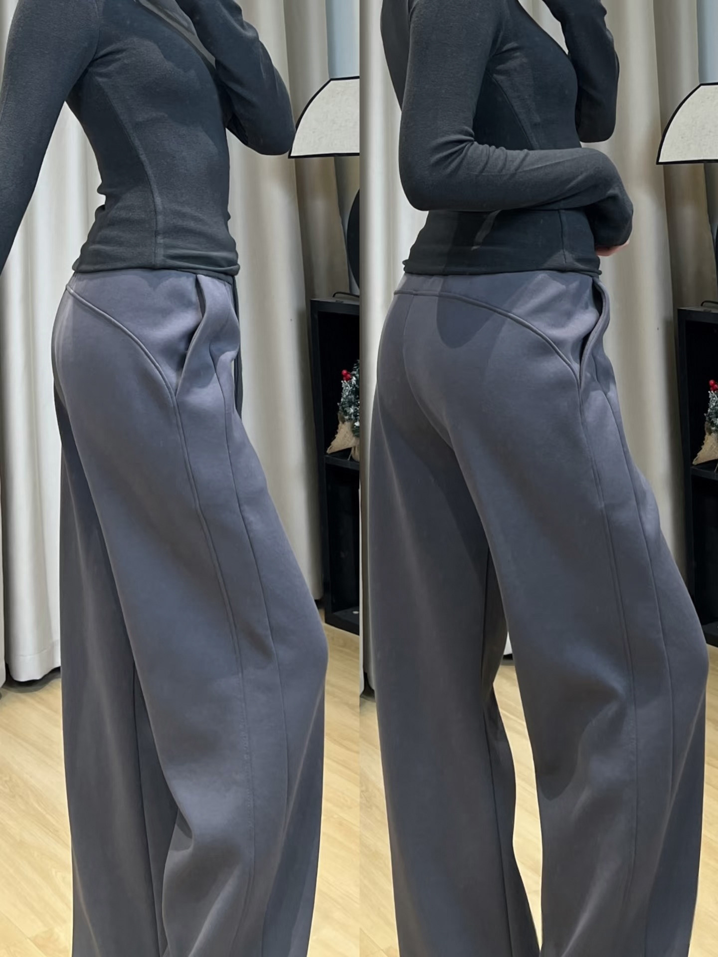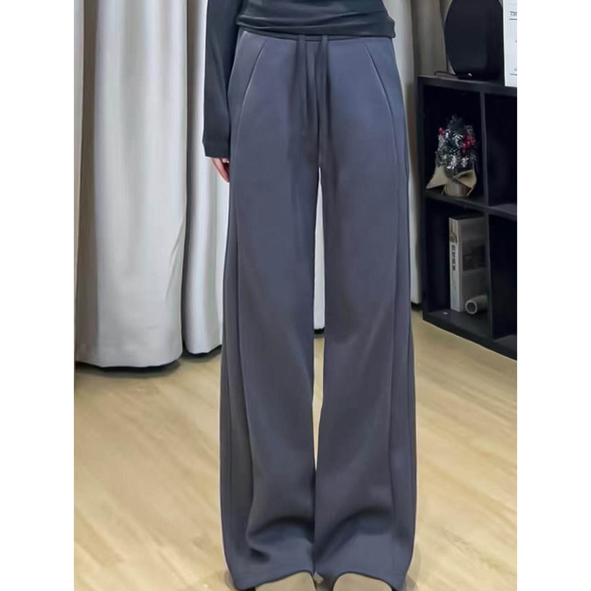 📚 深灰色阔腿裤女秋冬新款梨型身材裤子高腰显瘦运动卫裤梨形报恩裤