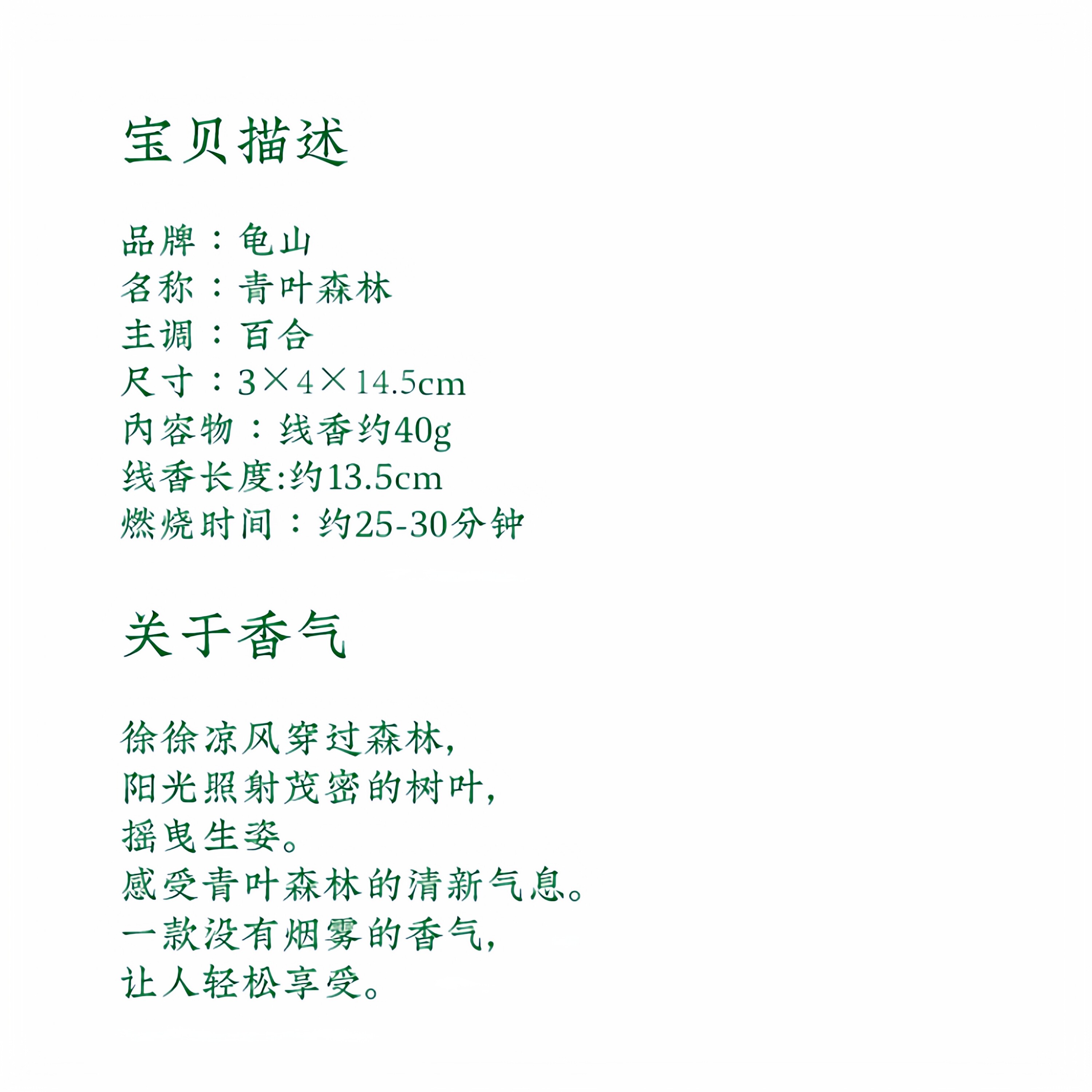📚 日本龟山青叶森林居家线香家用室内香薰舒缓安神熏香消臭微烟香氛