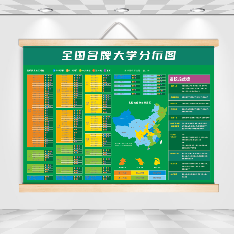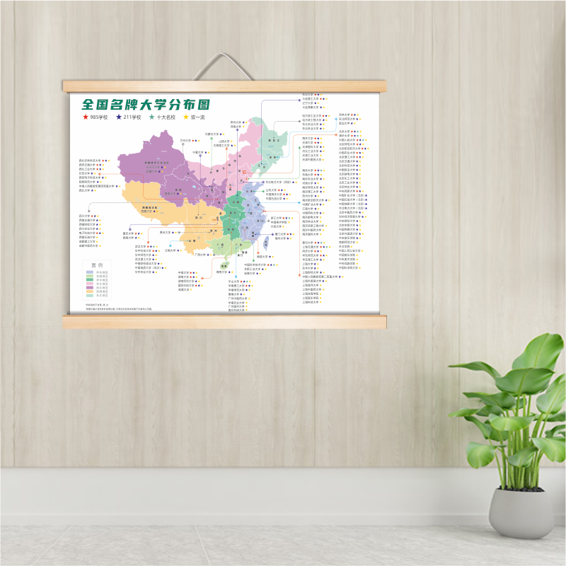 📚 全国名牌大学分布图 高校双一流重点本科985211大学实木卷轴挂画