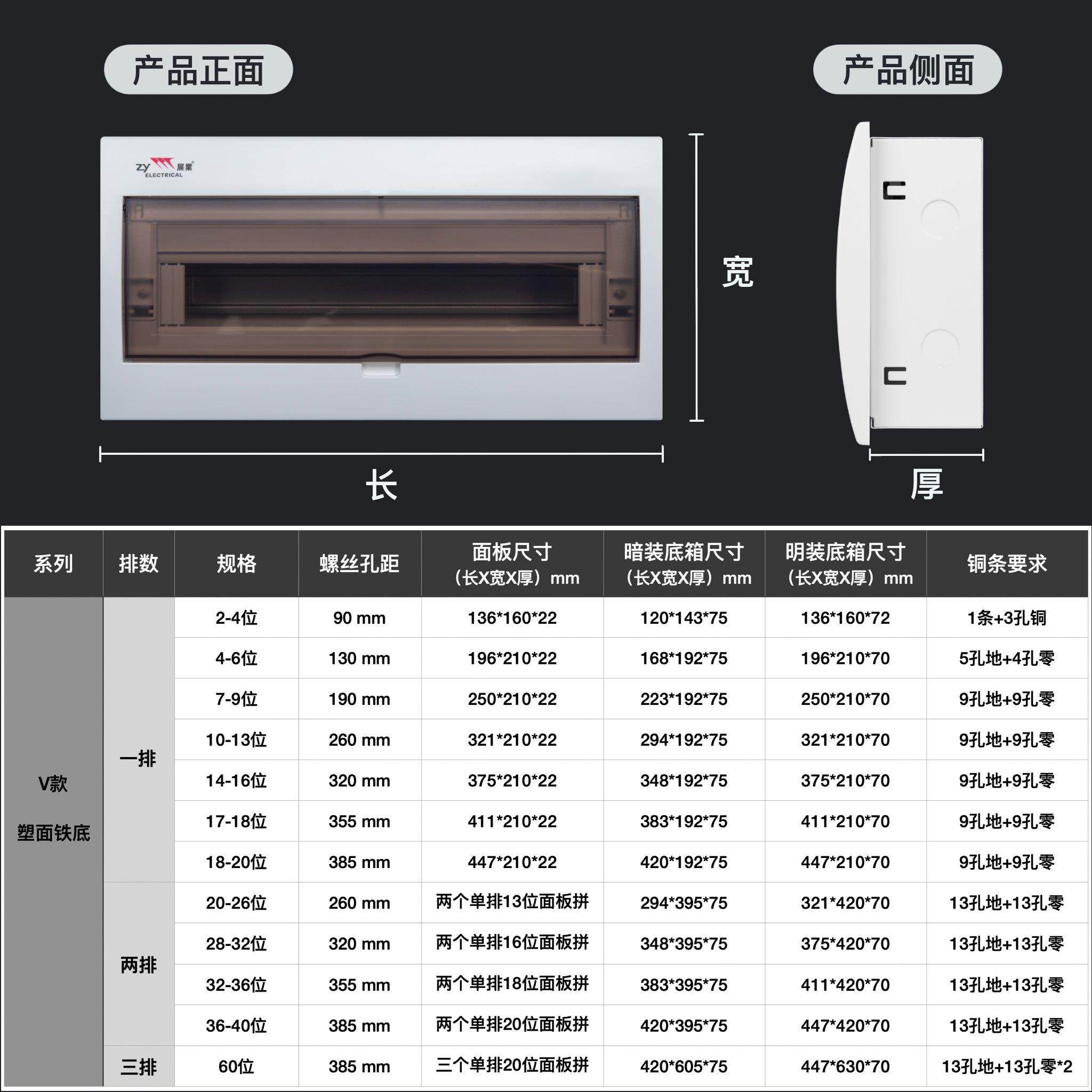 📚 展业家用配电箱V系列强电布线箱断路器开关配电明暗装铁底强电箱
