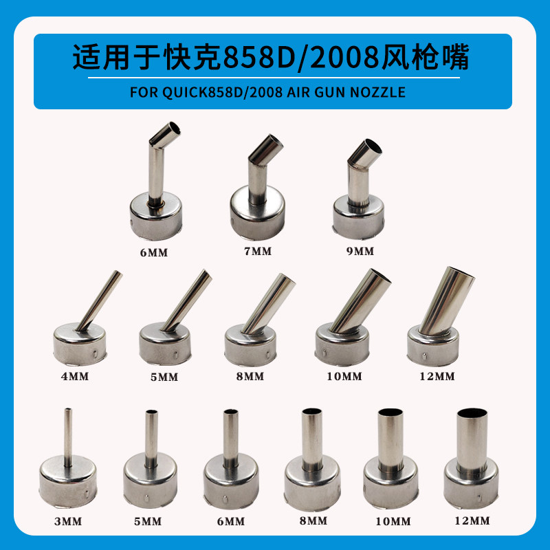 📚 通用快克858D/2008斜风枪嘴 热风枪出风弯头子多规格直嘴焊枪焊嘴