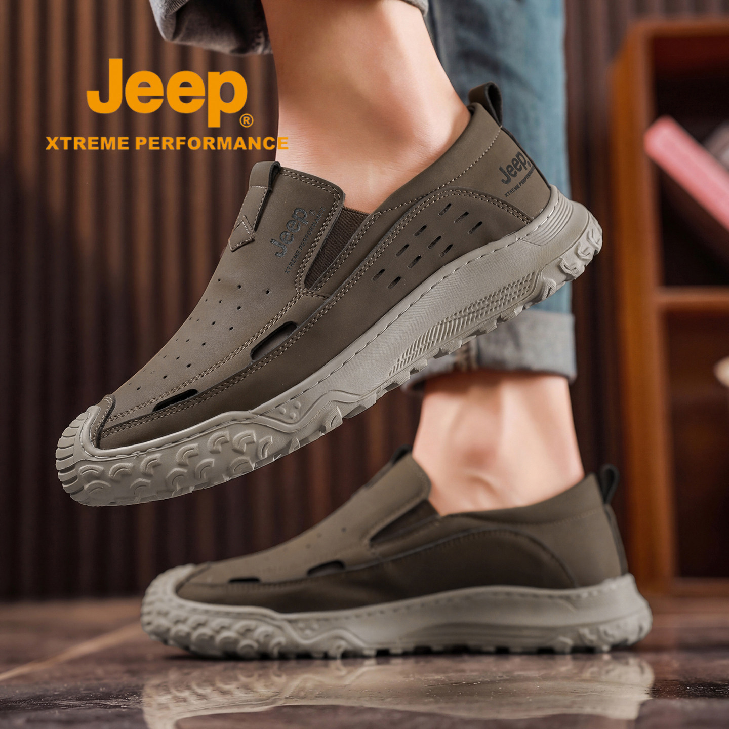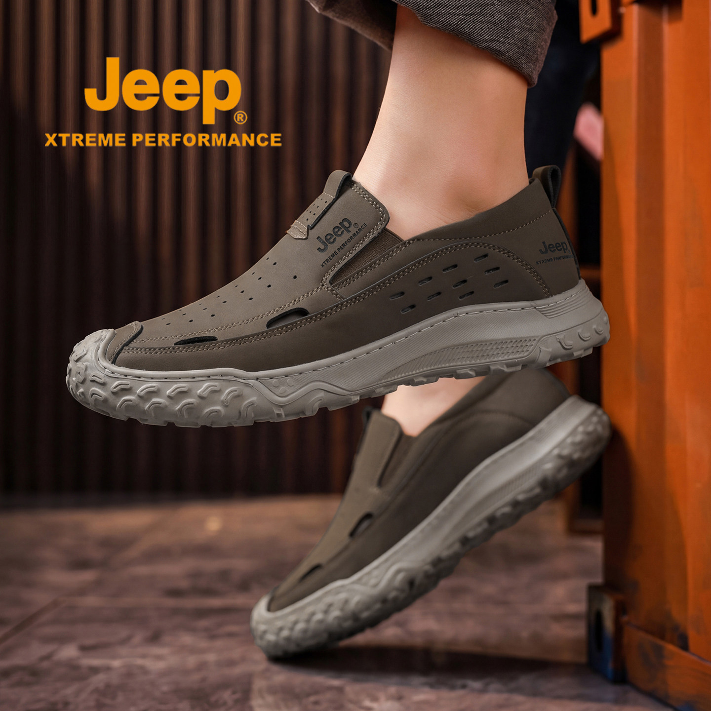 📚 Jeep一脚蹬懒人鞋男夏季透气镂空中年爸爸老人鞋轻便软底户外防滑