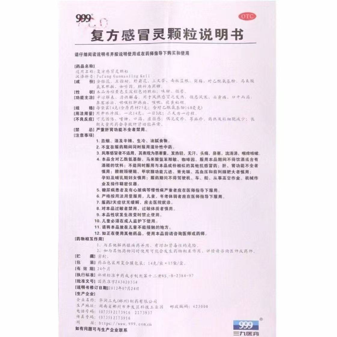 📚 999复方感冒灵颗粒大盒感冒发热辛凉解表清热解毒咳嗽三九旗舰店
