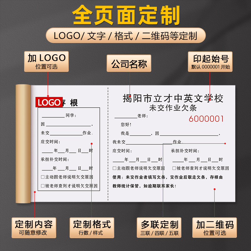 📚 【未交作业欠条存根】班级课堂练习上交提醒单功课完成情况记录表
