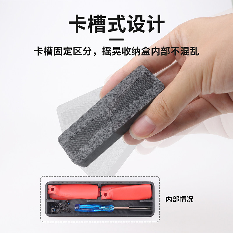 这款收纳盒采用了独特的螺旋桨叶设计,能够完美地收纳各种飞行器配件,无论是螺旋桨、翅膀、扇子叶片还是风叶片,都能轻松收纳进去。而且它的硬壳设计能够有效防止灰尘进入,真的是防尘罩中的战斗机!