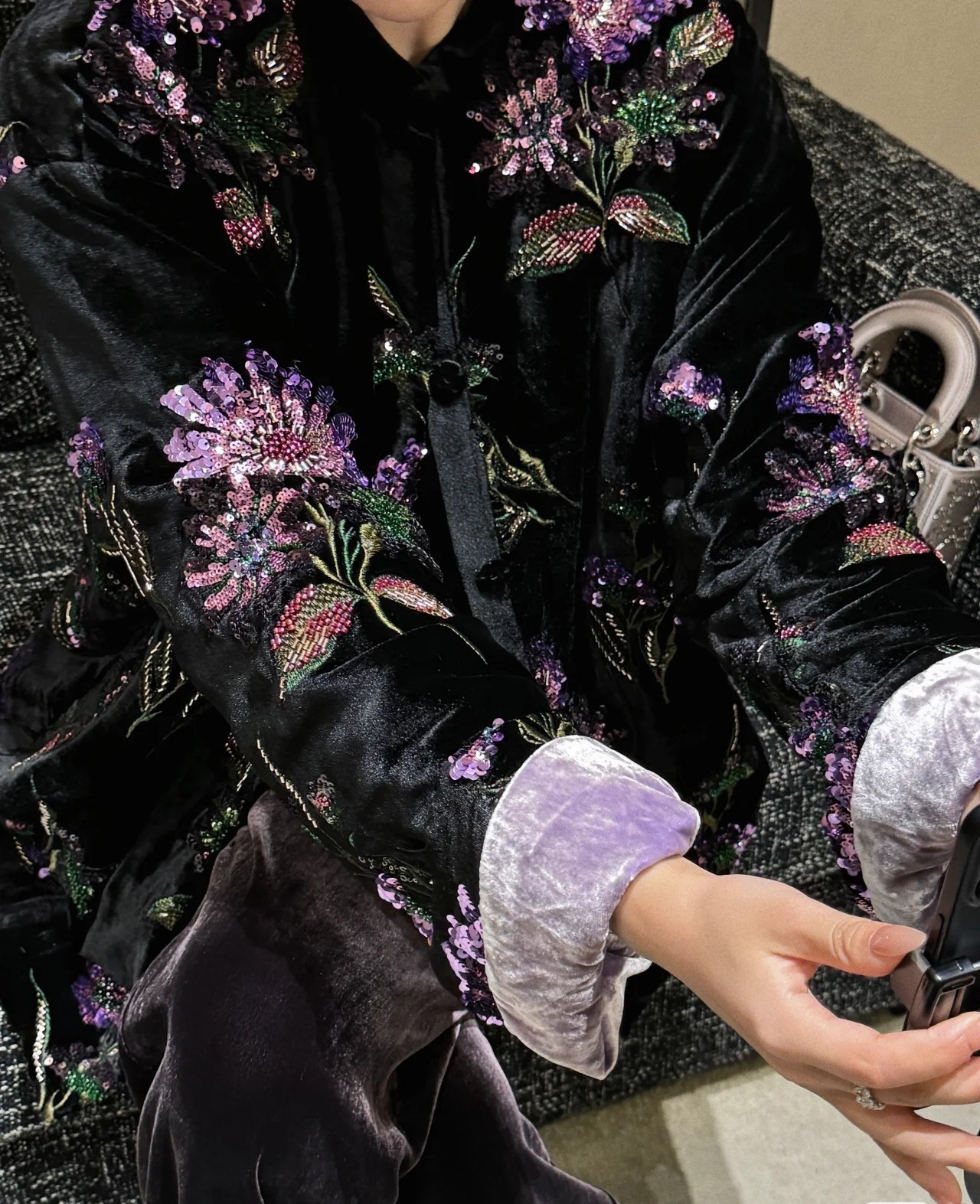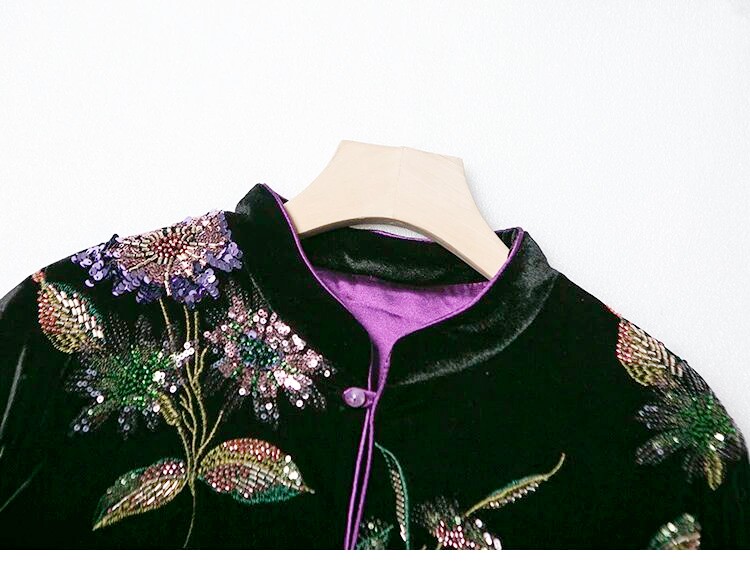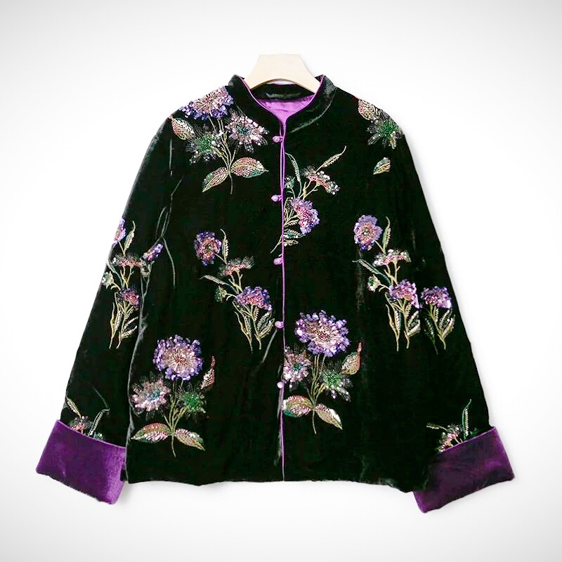 📚 新中式复古黑紫色真丝丝绒亮片刺绣国风外套棉服气质高级感国风