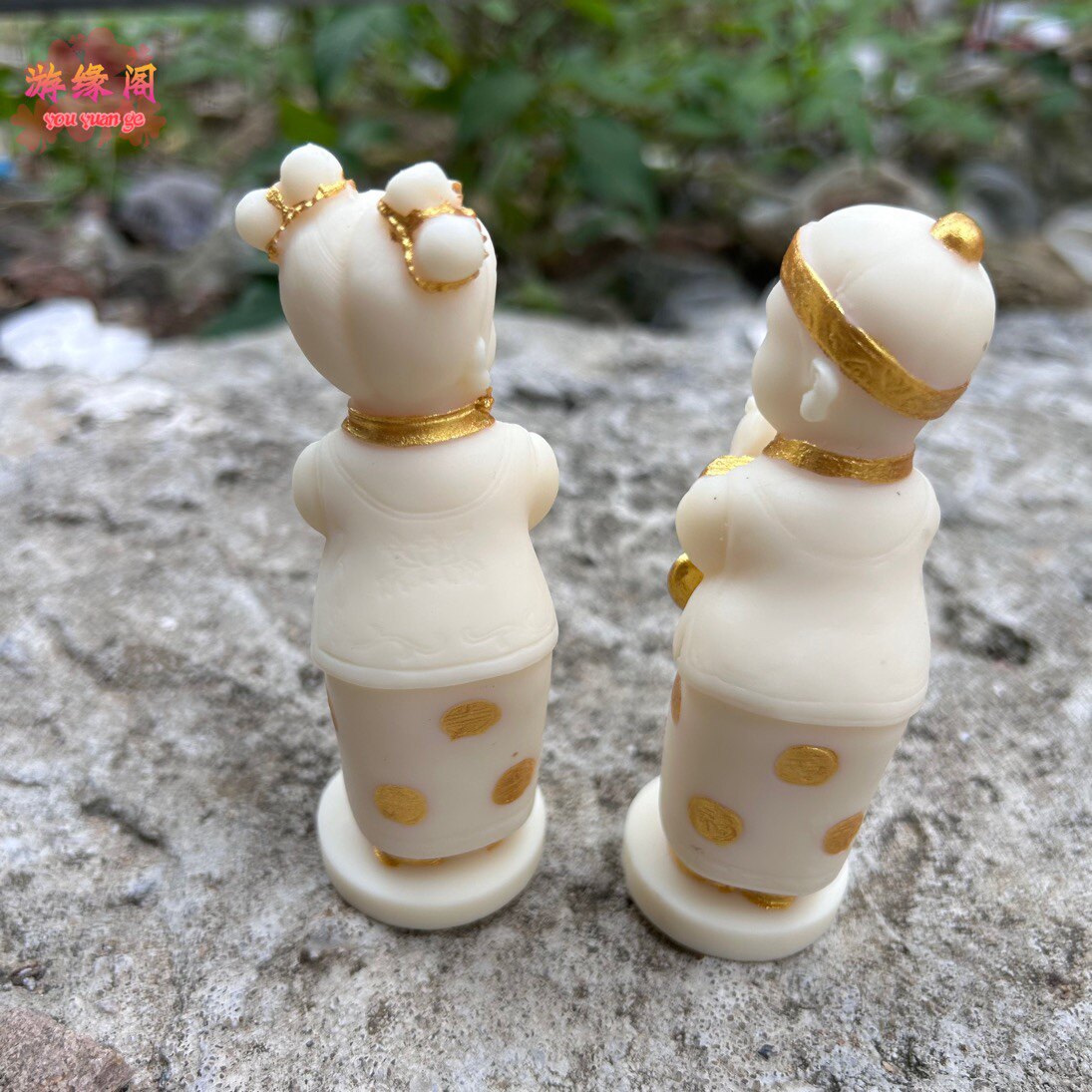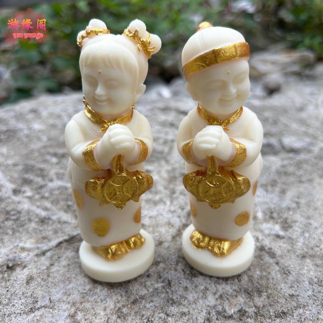 📚 象牙果菩提果金童玉女摆件送子善财童子龙女像车载童男童女工艺品