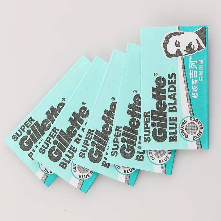 📚 原装正 品超 级蓝吉列剃须老式不锈钢双面白金刃口刀片包邮