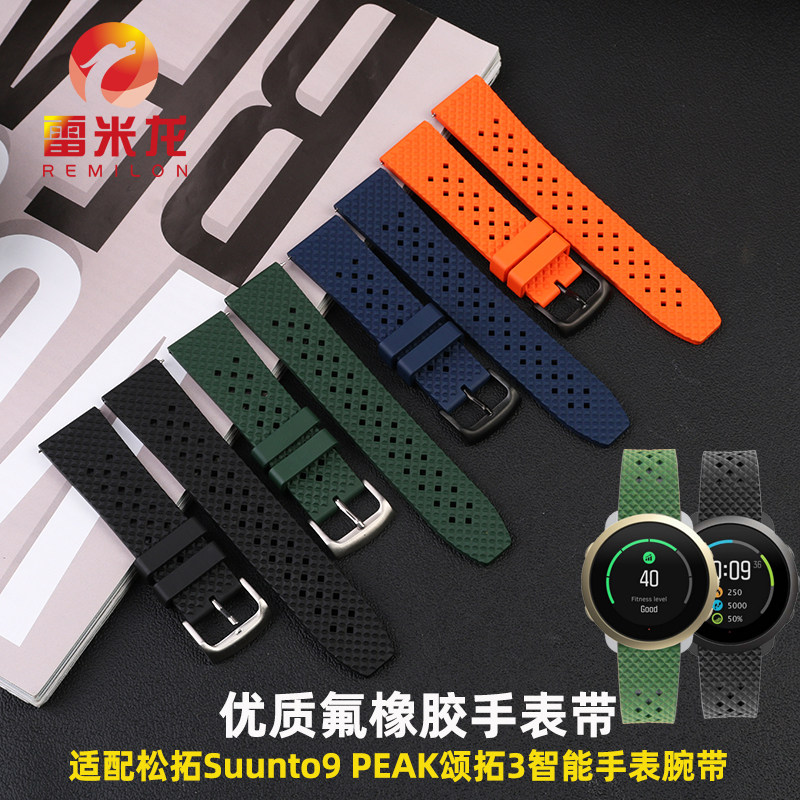 📚 优质氟橡胶手表带 适配颂拓3 SUUNTO 9PEAK版 松拓风度3Fitness智能腕带 户外运动替换橡胶表链配件20mm