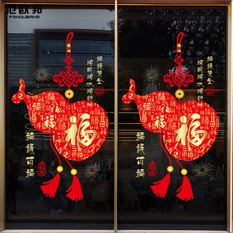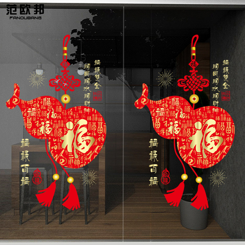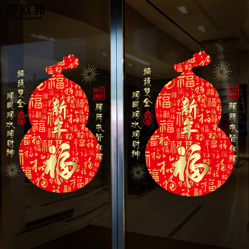 📚 福禄双全装饰窗花新年葫芦玻璃门静电贴纸春节福字贴画平安喜乐