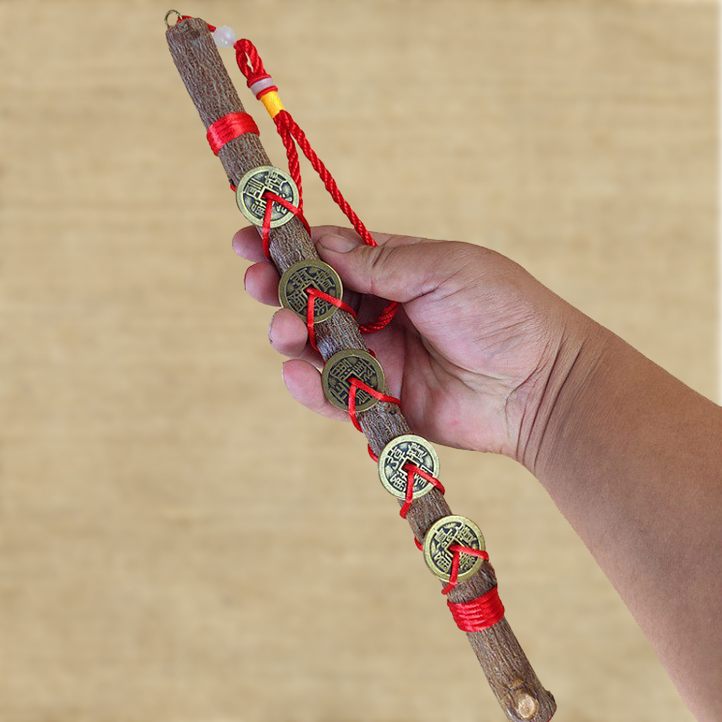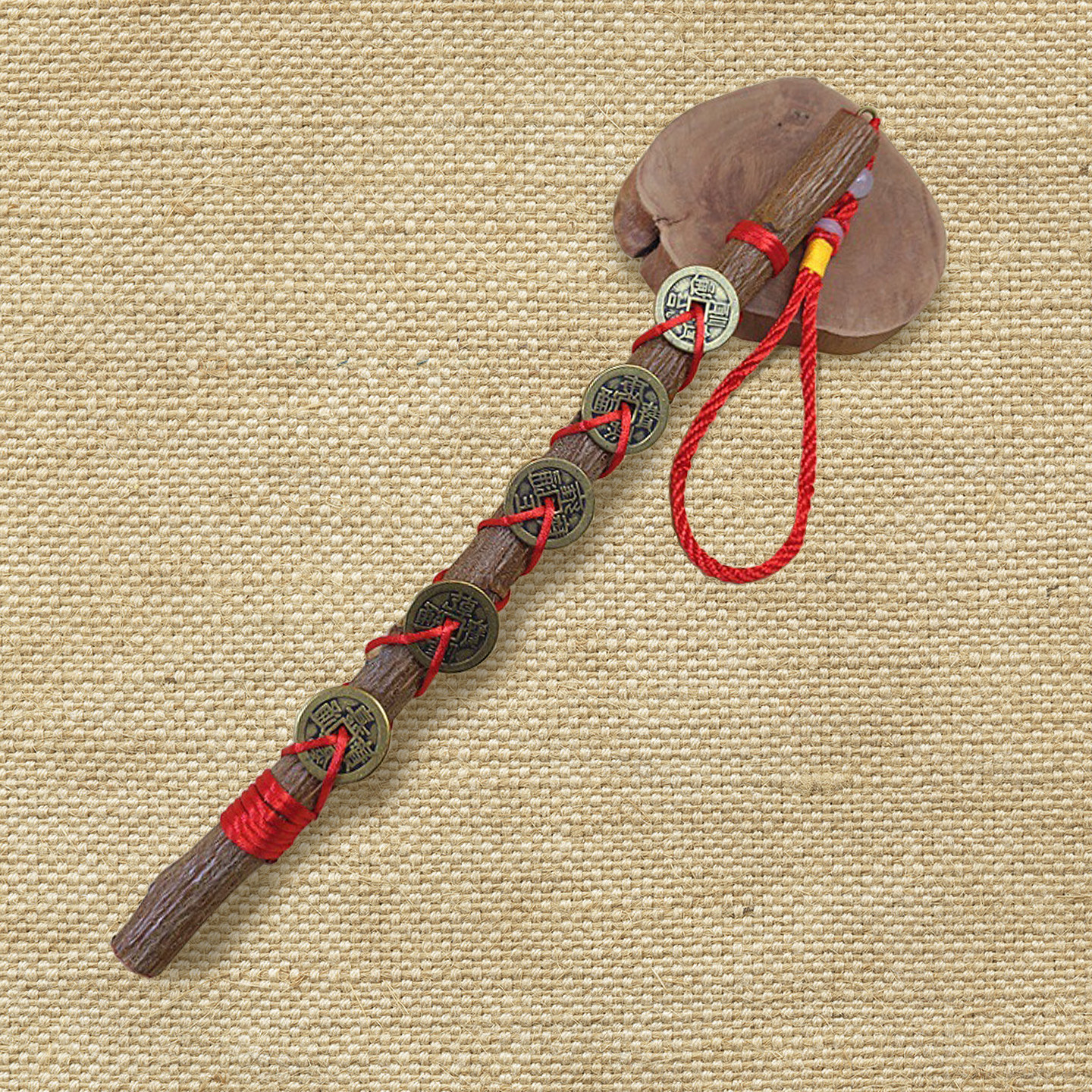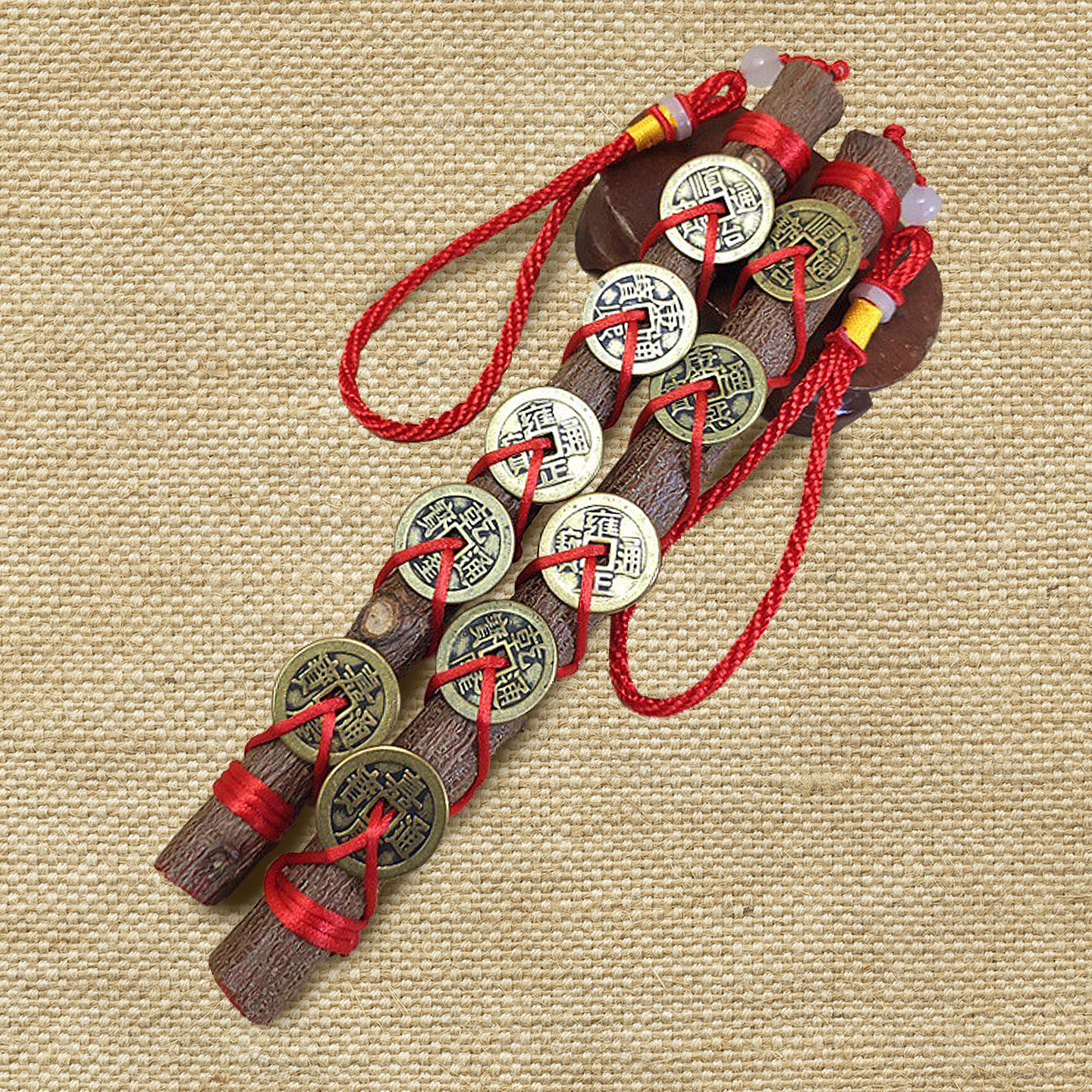 📚 五帝钱桃木挂件东南桃枝棍棒宝宝啼哭夜晚惊吓噩梦护身摆件镇宅
