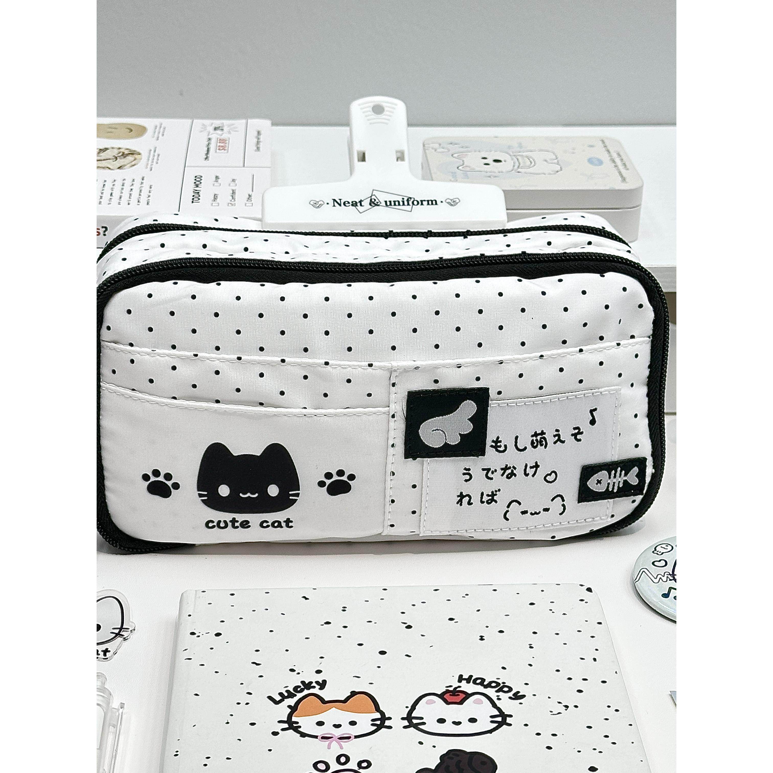 📚 可爱黑白波点小猫笔袋高颜值ins风大容量小众学生女生铅笔文具盒