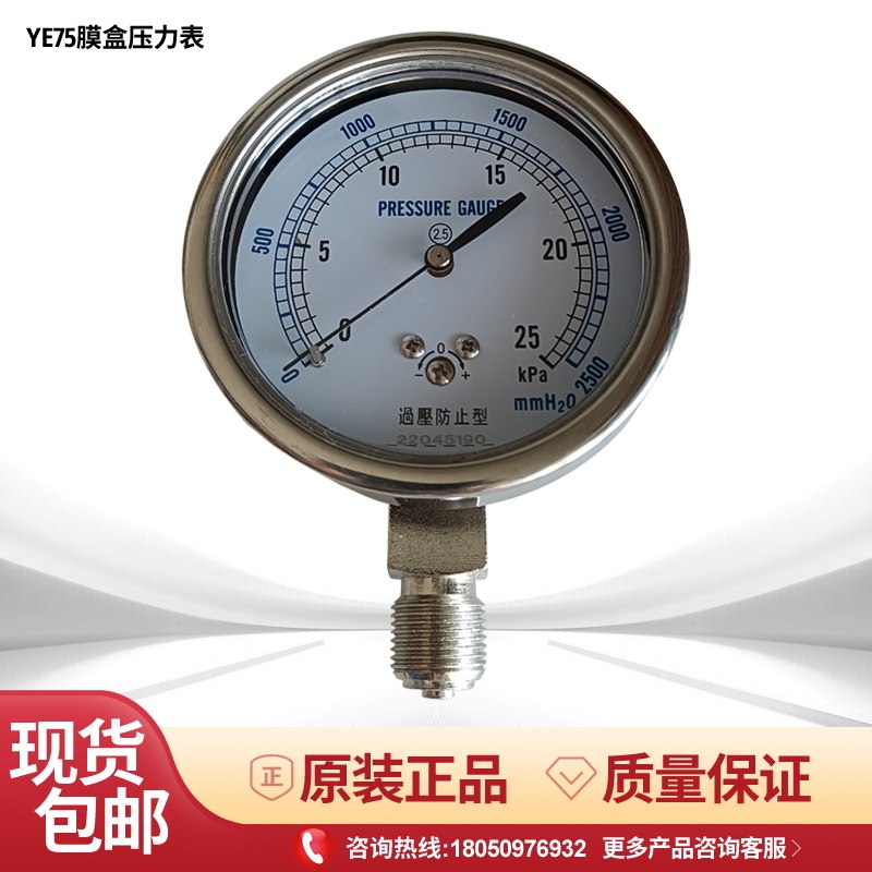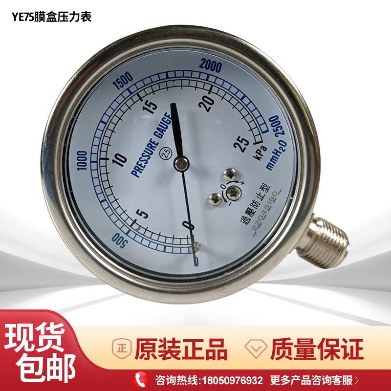 📚 YE-75过压防止型微压表燃气水柱表千帕表天然气膜盒压力表0-20kpa