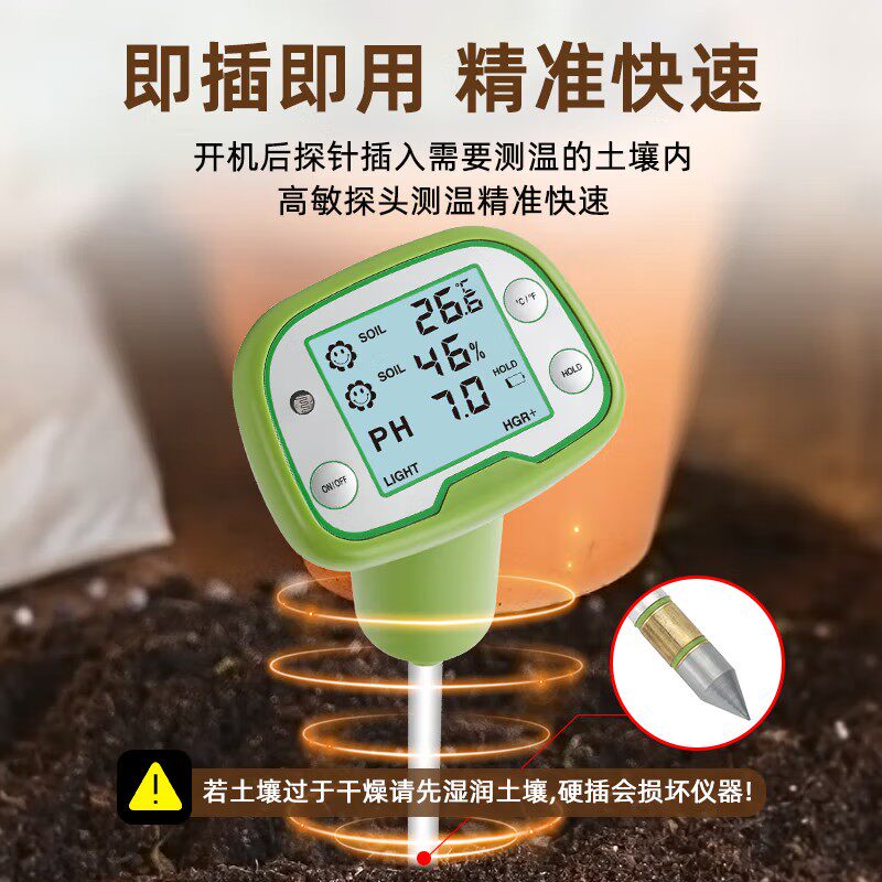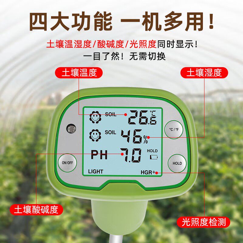 📚 高精度四合一土壤酸碱度PH值检测仪测量光照养分水分湿度传感仪器