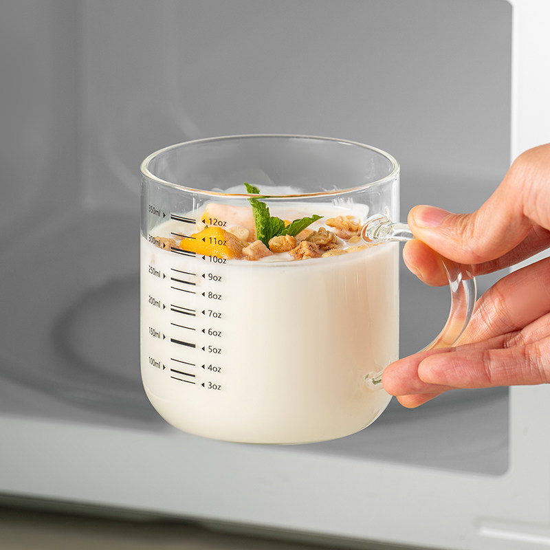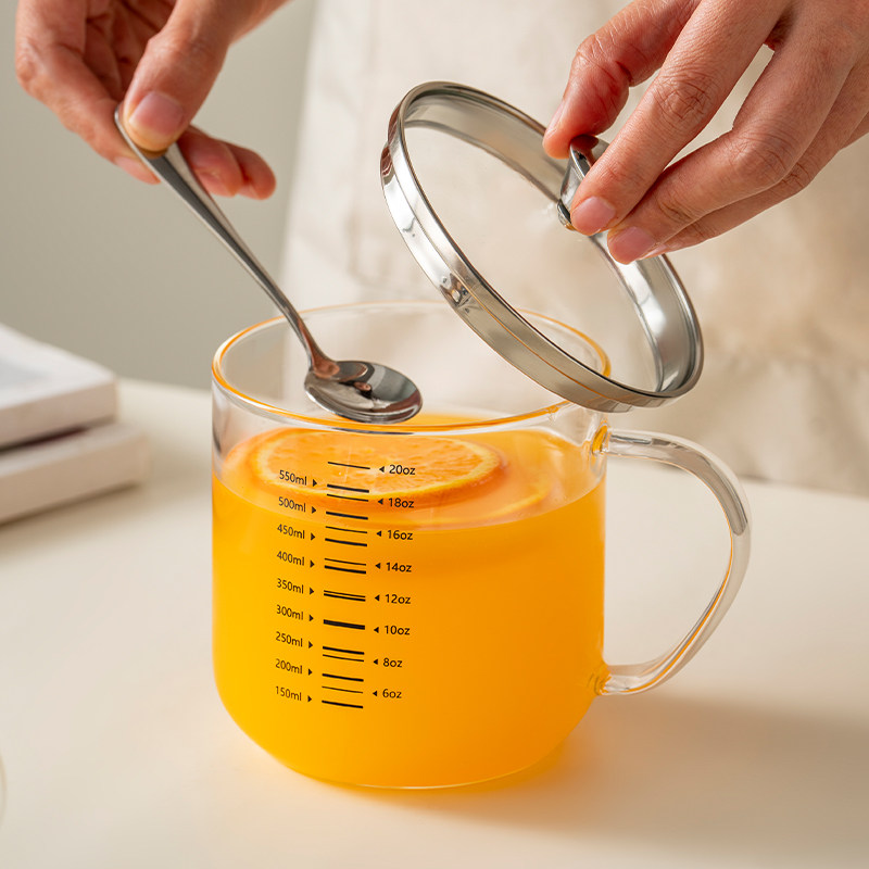 📚 onlycook高硼硅玻璃杯家用牛奶杯刻度水杯早餐杯带盖子果汁咖啡杯