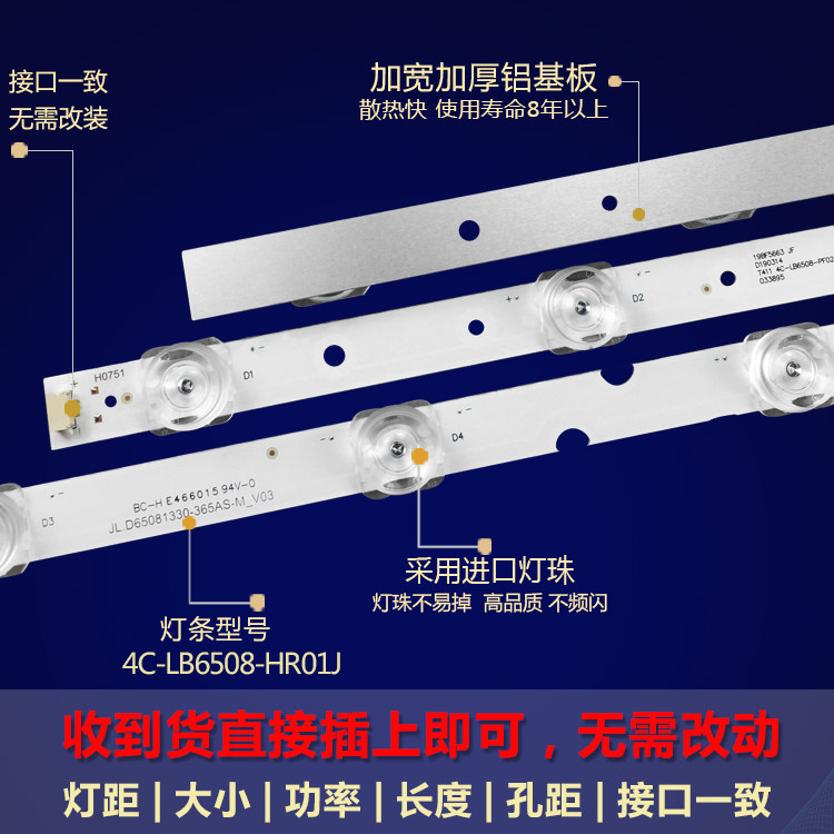 📚 适用TCL 65V2 65F6 D65A6东芝65U3800C/3900C灯条65HR330M08A41V4