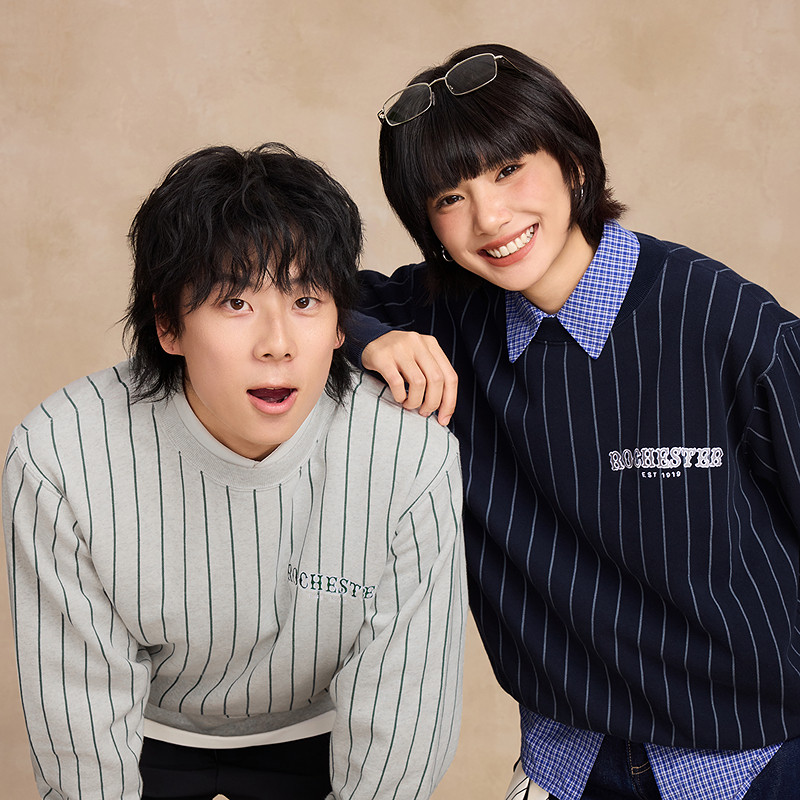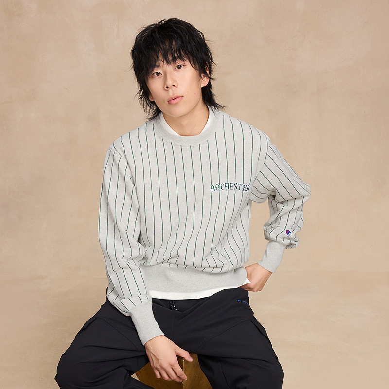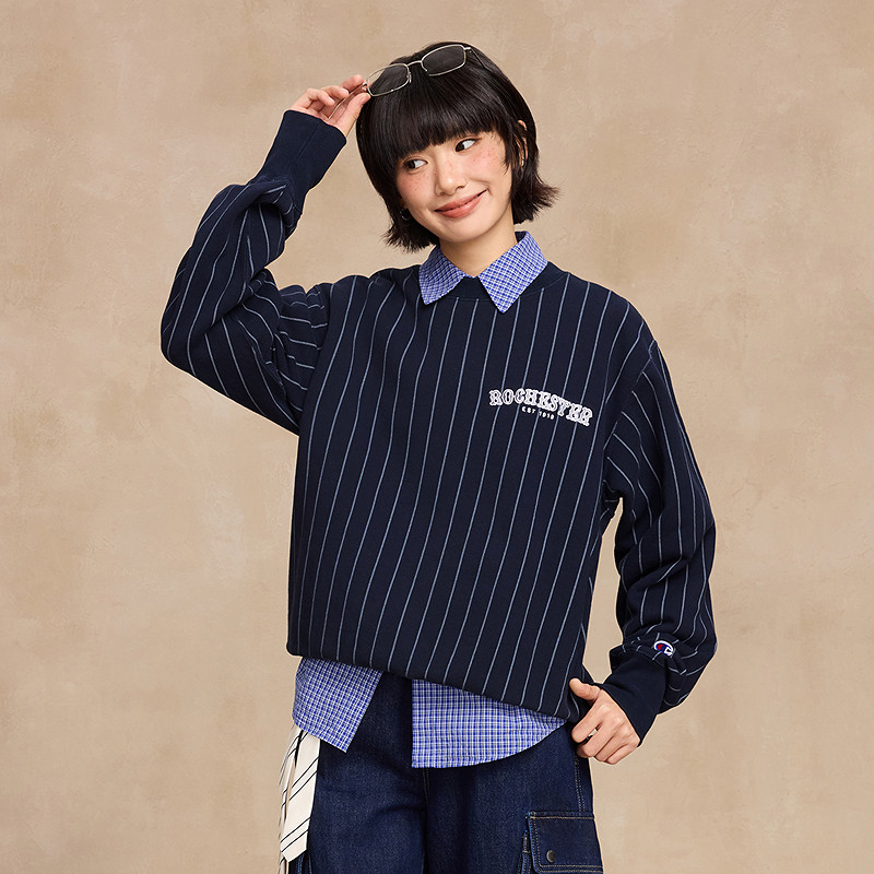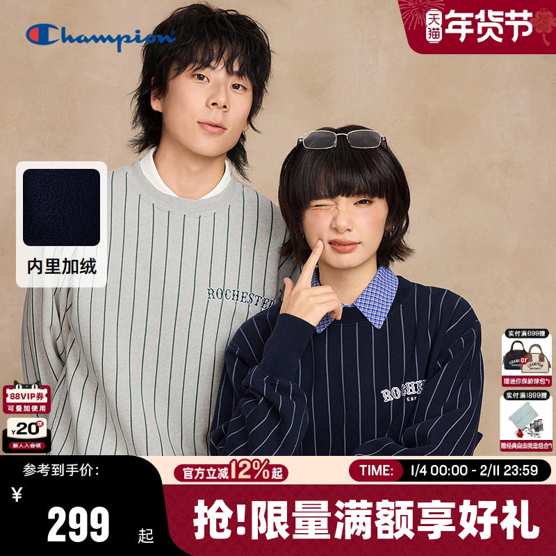 📚 Champion冠军廓形圆领卫衣男25冬季新款纯棉加绒条纹上衣女复古秋