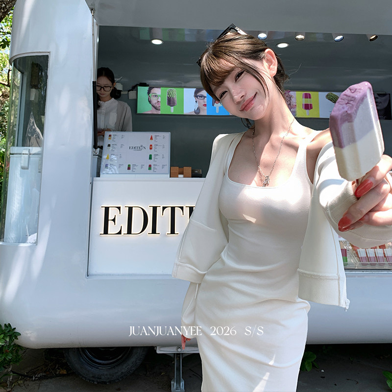 📚 juanjuanyee【中区卡戴珊】修身高弹力工字背心裙+短款卫衣套装