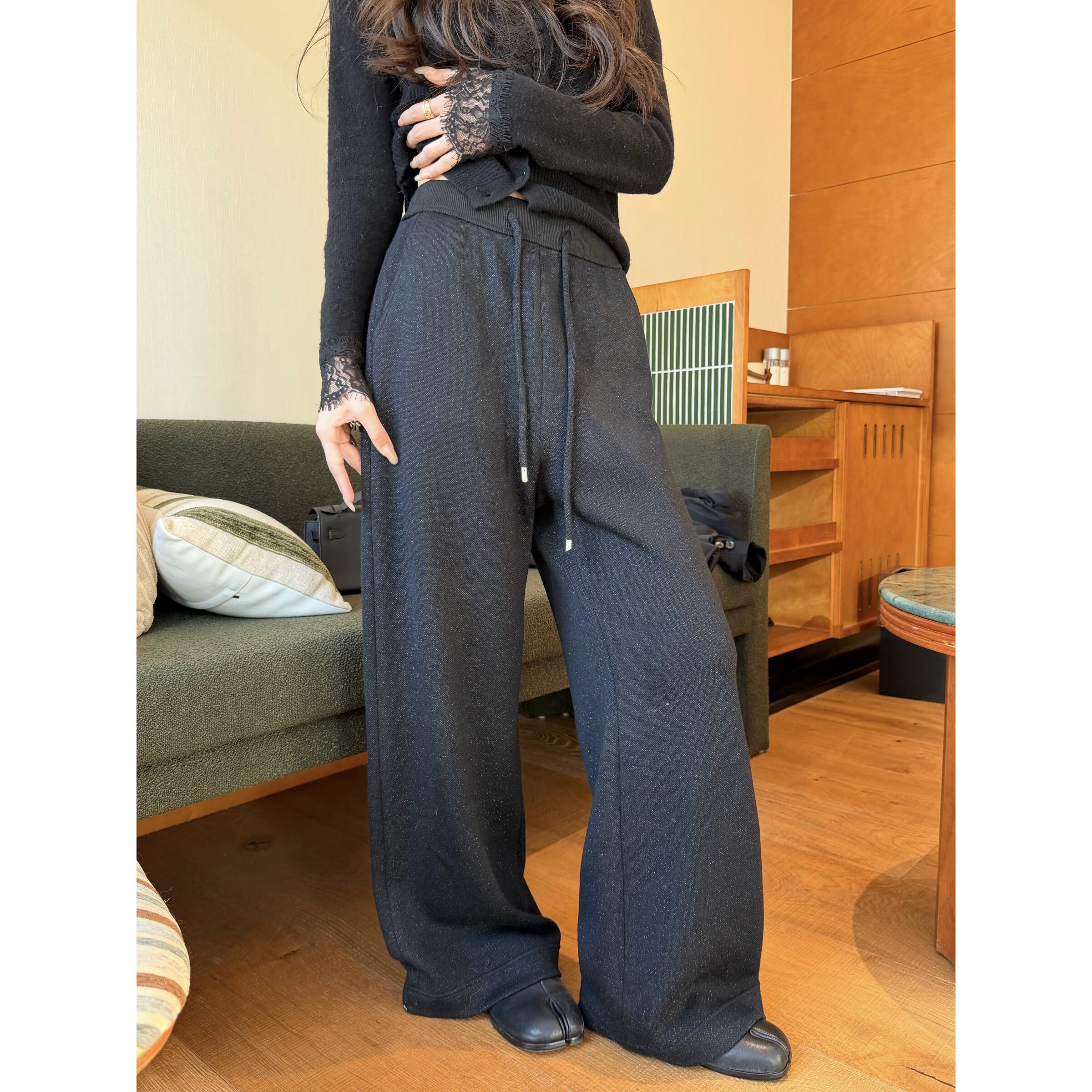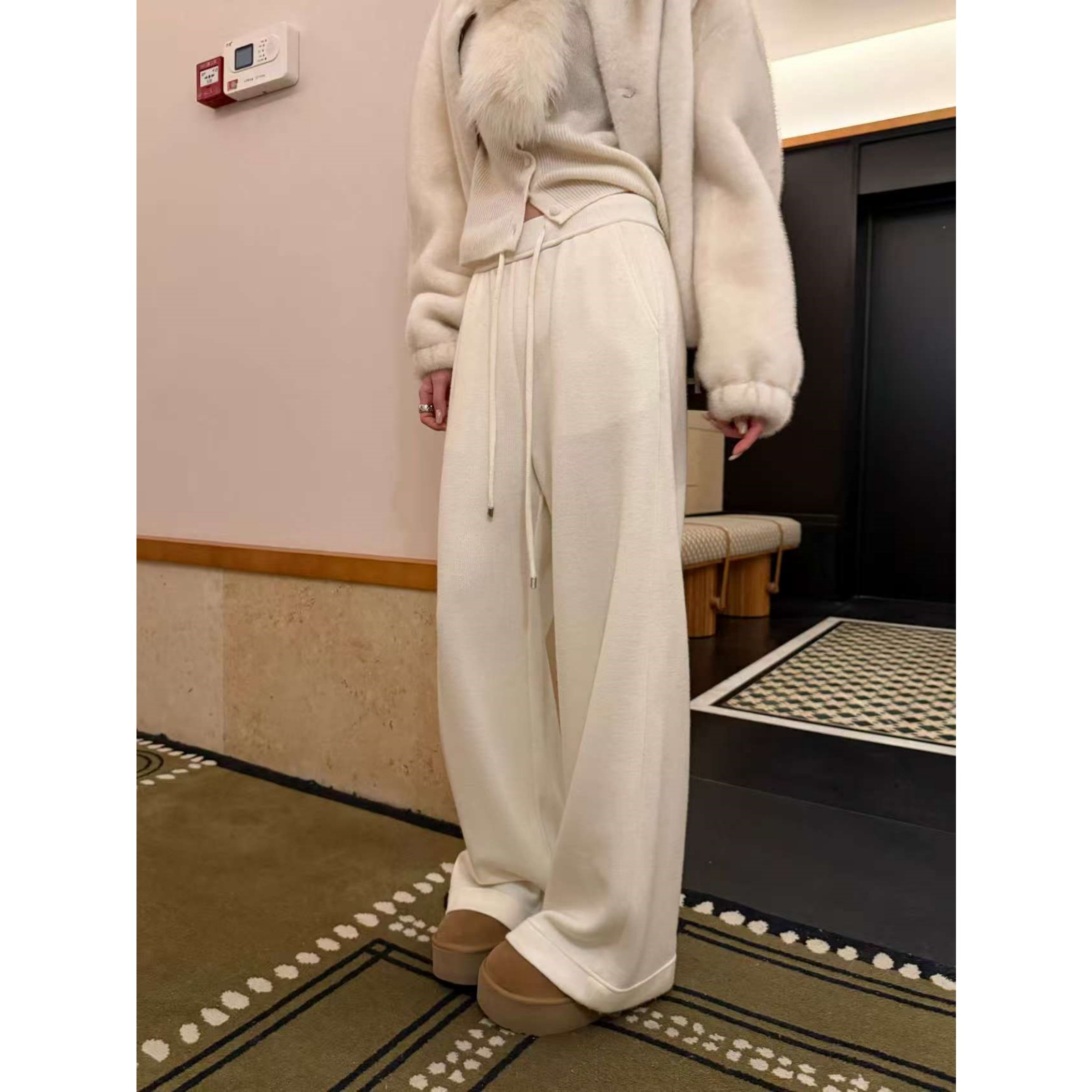 📚 'bling松软神裤'含绵羊毛抽绳系带宽松显瘦百搭针织阔腿长裤 清