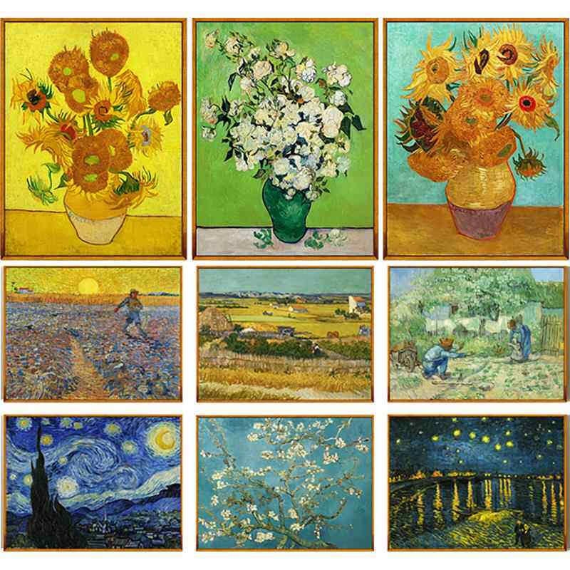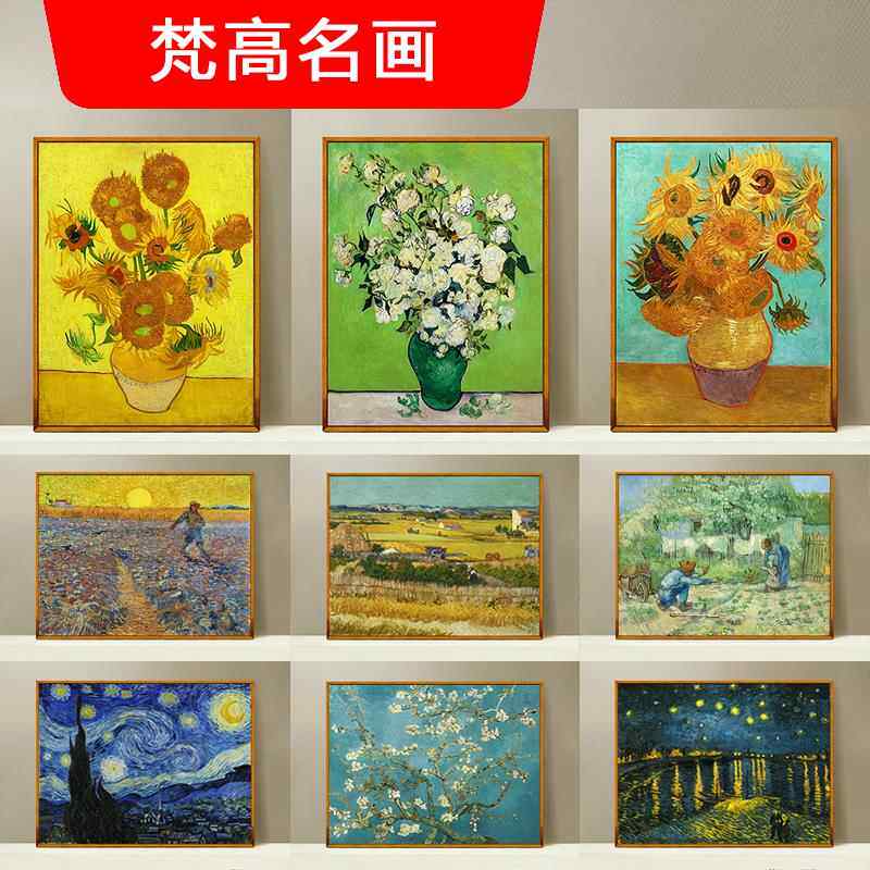 📚 梵高油画世界名画海报自粘墙贴早教画星空向日葵丰收装饰画挂图画