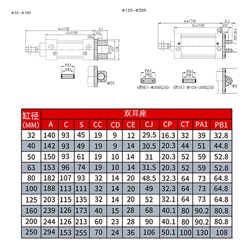 📚 亚德客型SC气缸附件双耳环CB32-40-50-63-80-100-125-160底座尾座