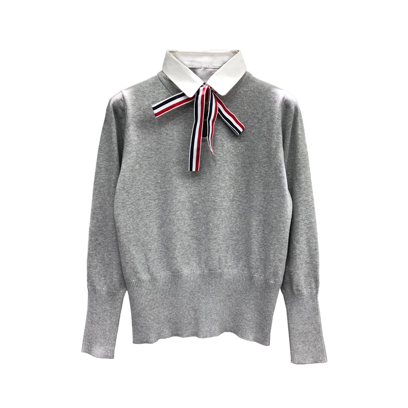 📚 TB红白蓝蝴蝶结假两件衬衫领针织衫女秋冬季加厚慵懒高级感毛衣潮