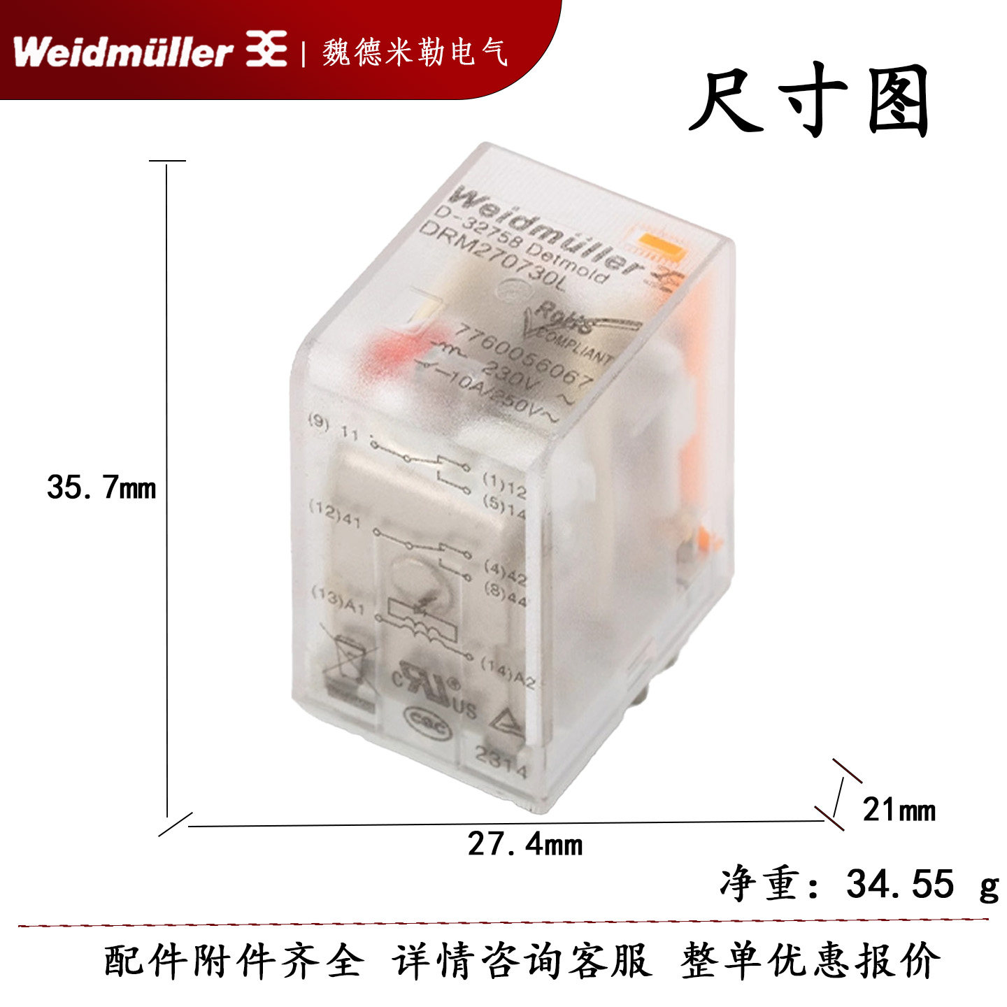 📚 魏德米勒继电器DRM270730L 正品 2开2闭 AC230V 10A 7760056067