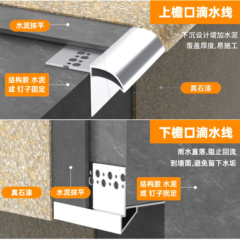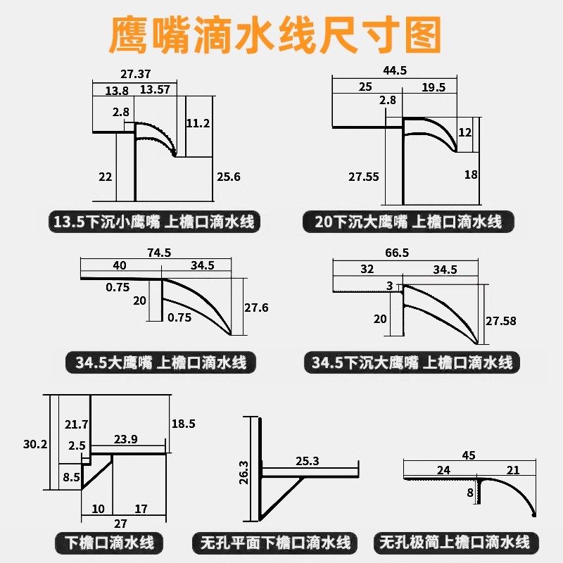 📚 铝合金鹰嘴滴水线条窗台防水引水挡水条外墙屋檐雨水槽水包砂下檐