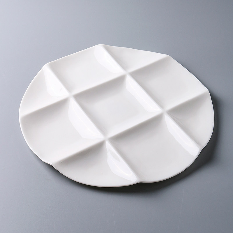 📚 酒店中厨餐具九格圆形展示盘子白瓷冷菜凉菜六吃六味会所特色浅盘